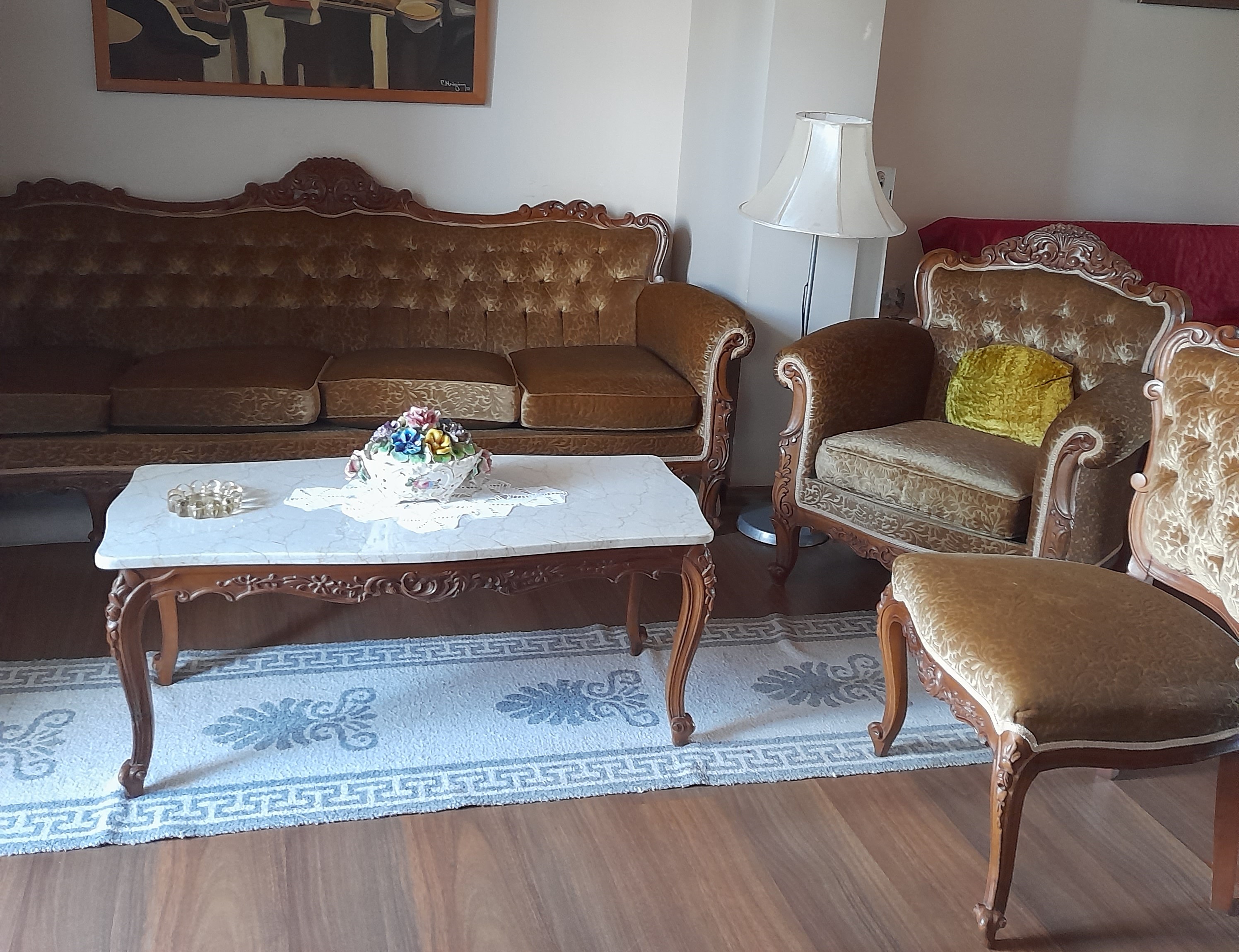 1. Σαλόνι κλασικού τύπου «Λουδοβίκου» αποτελούμενο από ένα καναπέ 4θέσιο, δύο πολυθρόνες, δύο καρέκλες και τρία τραπεζάκια, σε άριστη κατάσταση.