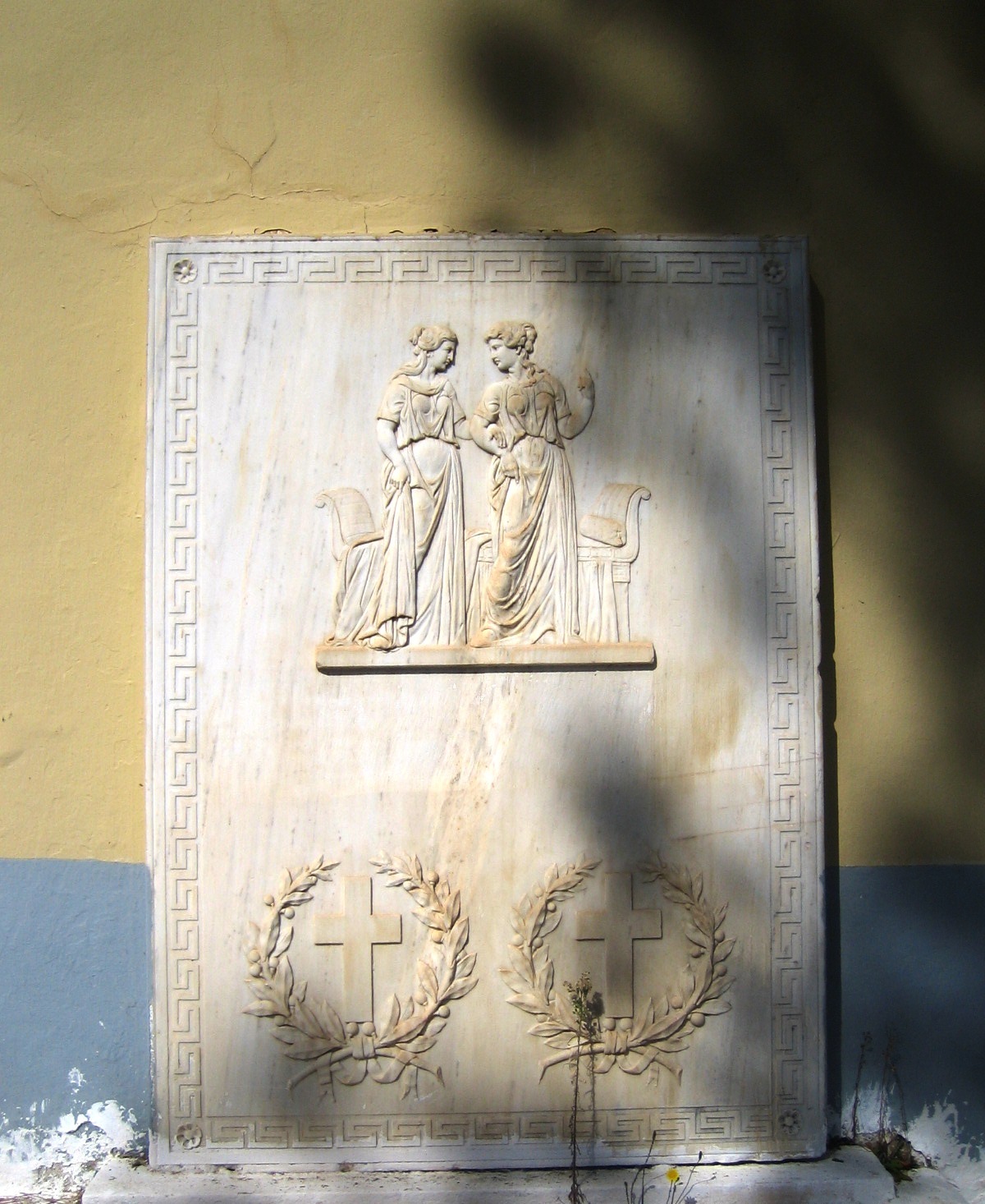 Ευτυχώς, μια απόγονος της οικογένειας, η σπαρτιατολάτρις Κα Αννίτα Γιατράκου-Λούβη, έσωσε την ύστατη στιγμή την πλάκα κι επέβαλε να εντοιχιστεί στα αριστερά του Ναού του Α. Γεωργίου, αποτρέποντας το ενδεχόμενο μελλοντικής επαναχρησιμοποίησής της, χαρίζοντας με τον τρόπο αυτό αιώνια μνήμη στις δυο άτυχες Σπαρτιατοπούλες, για όσους (τουλάχιστον) γνωρίζουν ή ζητούν να μάθουν την τραγική ιστορία τους.