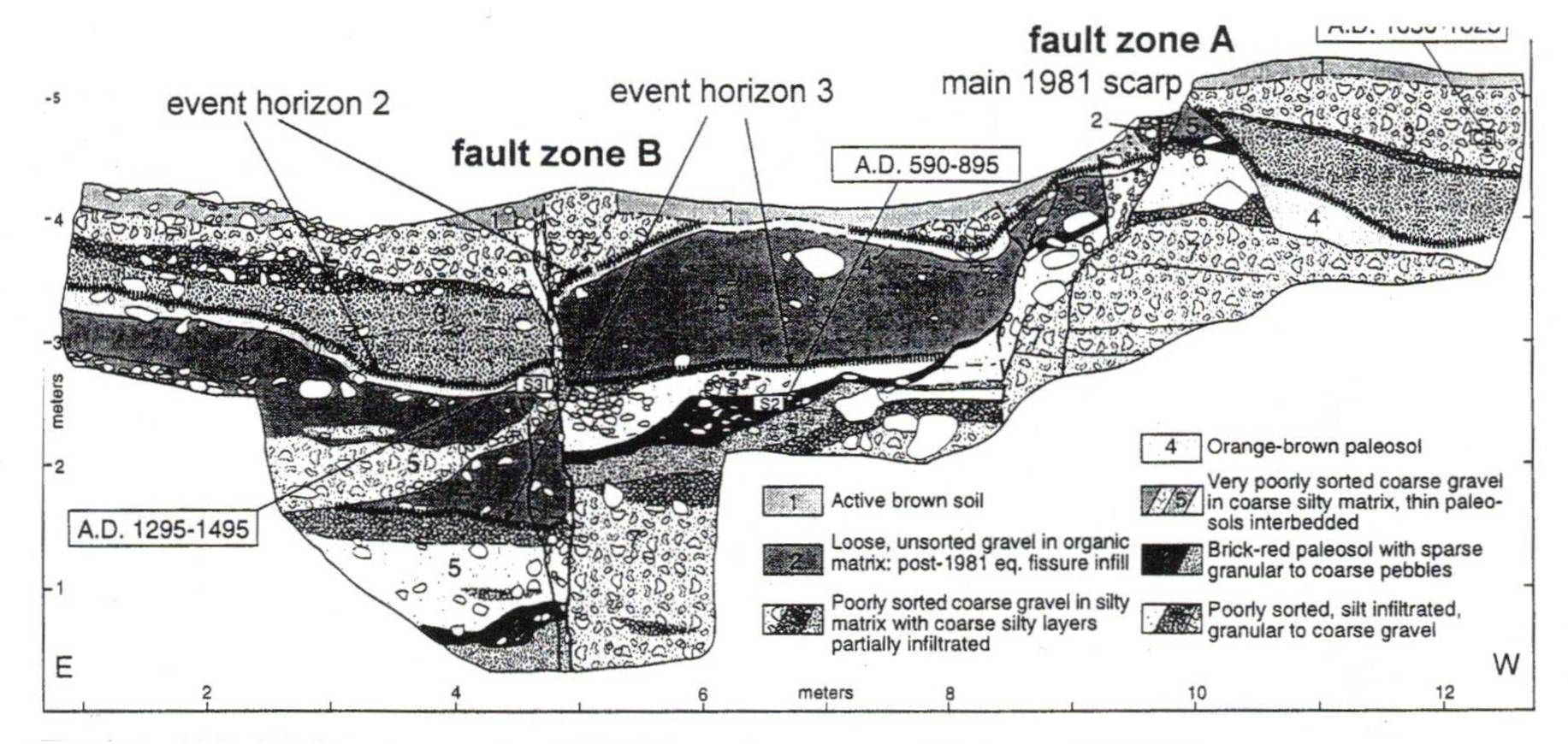 Εικ.10 Παλαιοσεισμοί στις Βαμβακιές περιοχής Σχίνου. Πηγή: Pantosti et all, 1996.