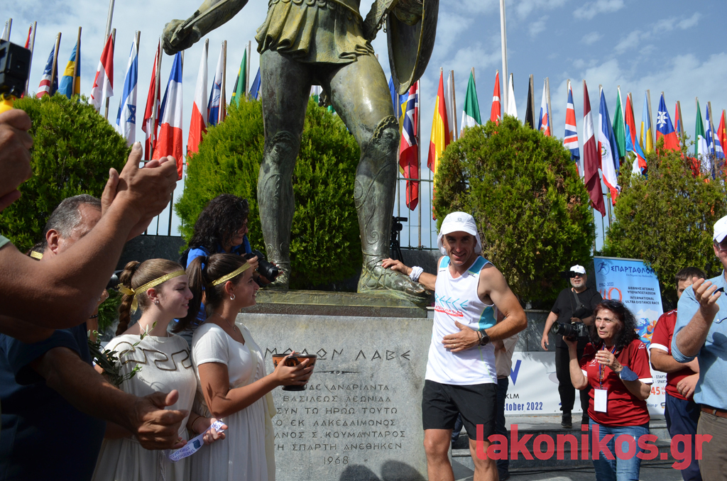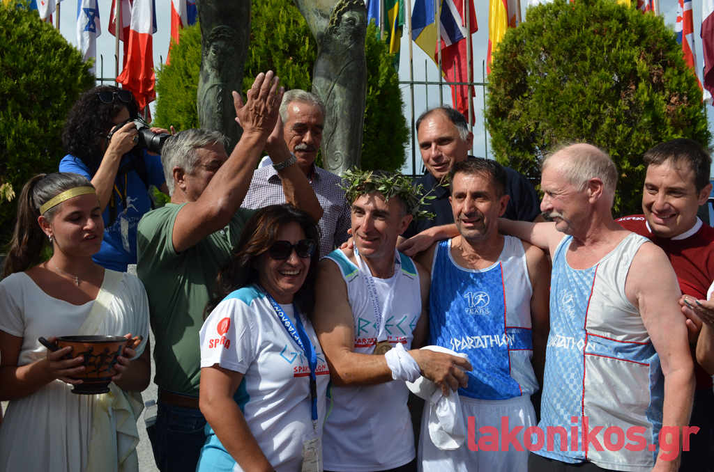 Λίγο μετά τις 3 το μεσημέρι του Σαββάτου 1/10 και με χρόνο 32ώρες 28λεπτά και 7δευτερόλεπτα, ο πρόεδρος του Συλλόγου Σπαρτιατών Δρομέων έφτασε στον τερματισμό, εν μέσω πανηγυρισμών και του θερμού χειροκροτήματος από εκατοντάδες πολίτες, φίλους και συγγενείς.