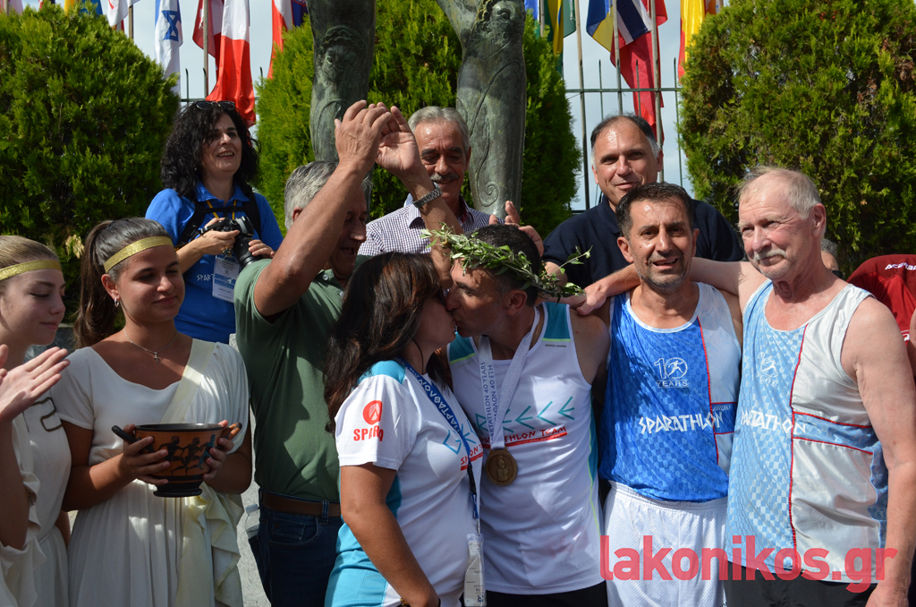 Συγκινητική ήταν και η στιγμή κατά την οποία ο θρύλος του Σπάρταθλον, Φιλανδός, Leinonen Seppo, ο οποίος έχει τερματίσει στο Σπάρταθλον 15 φορές μεταξύ των ετών 1986 και 2006, στεφάνωσε τον φίλο του πια Γιώργο Κουλόγιαννη. Ο βετεράνος αθλητής αποτελεί πρότυπο και έμπνευση για τον Γιώργο, καθώς από ηλικίας 15 ετών τον συνόδευε στα τελευταία του βήματα προς τον τερματισμό. Μάλιστα, ο Seppo φορούσε σήμερα την αθλητική φανέλα της εποχής.