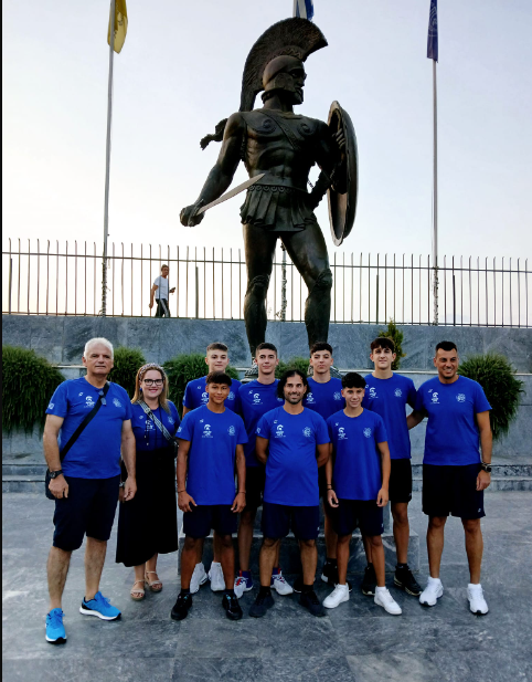 Στο πλευρό των παιδιών του Δήμου Αν. Μάνης βρίσκονται ο αντιδήμαρχος Γεώργιος Καπασούρης-Σεψάκος, ο Δημήτριος Τζανής και οι προπονητές τους.