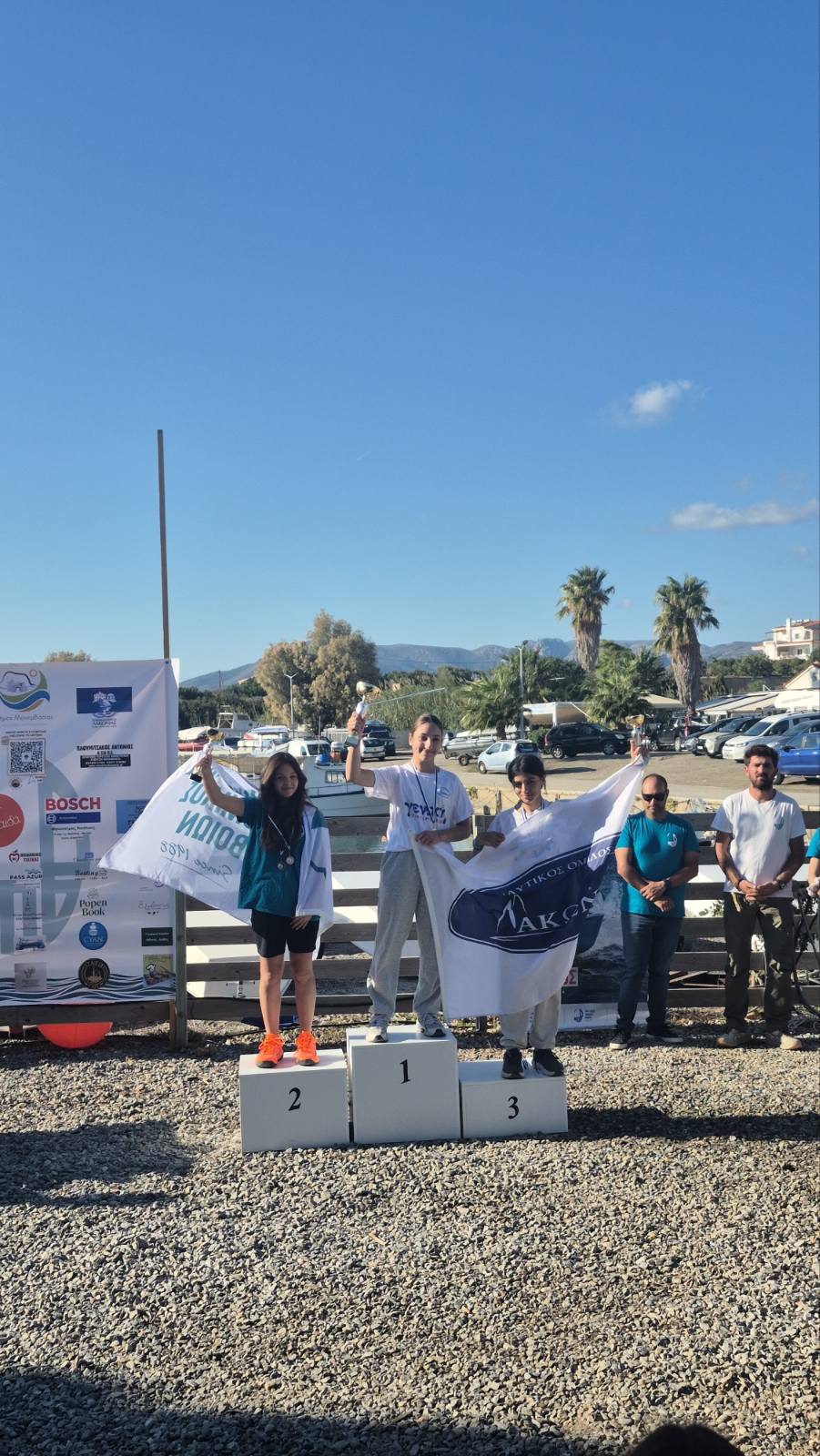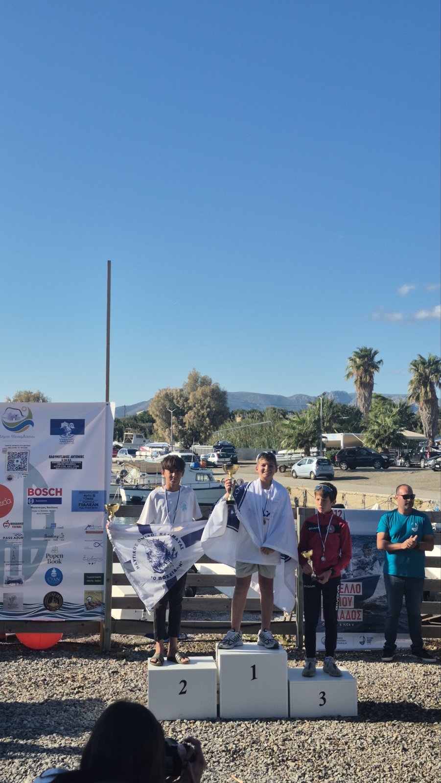 - Στην κατηγορία ILCA 4 έλαβαν μέρος ο Χάρης Μπουτεράκος και η Αναστασία Τσολομύτη.