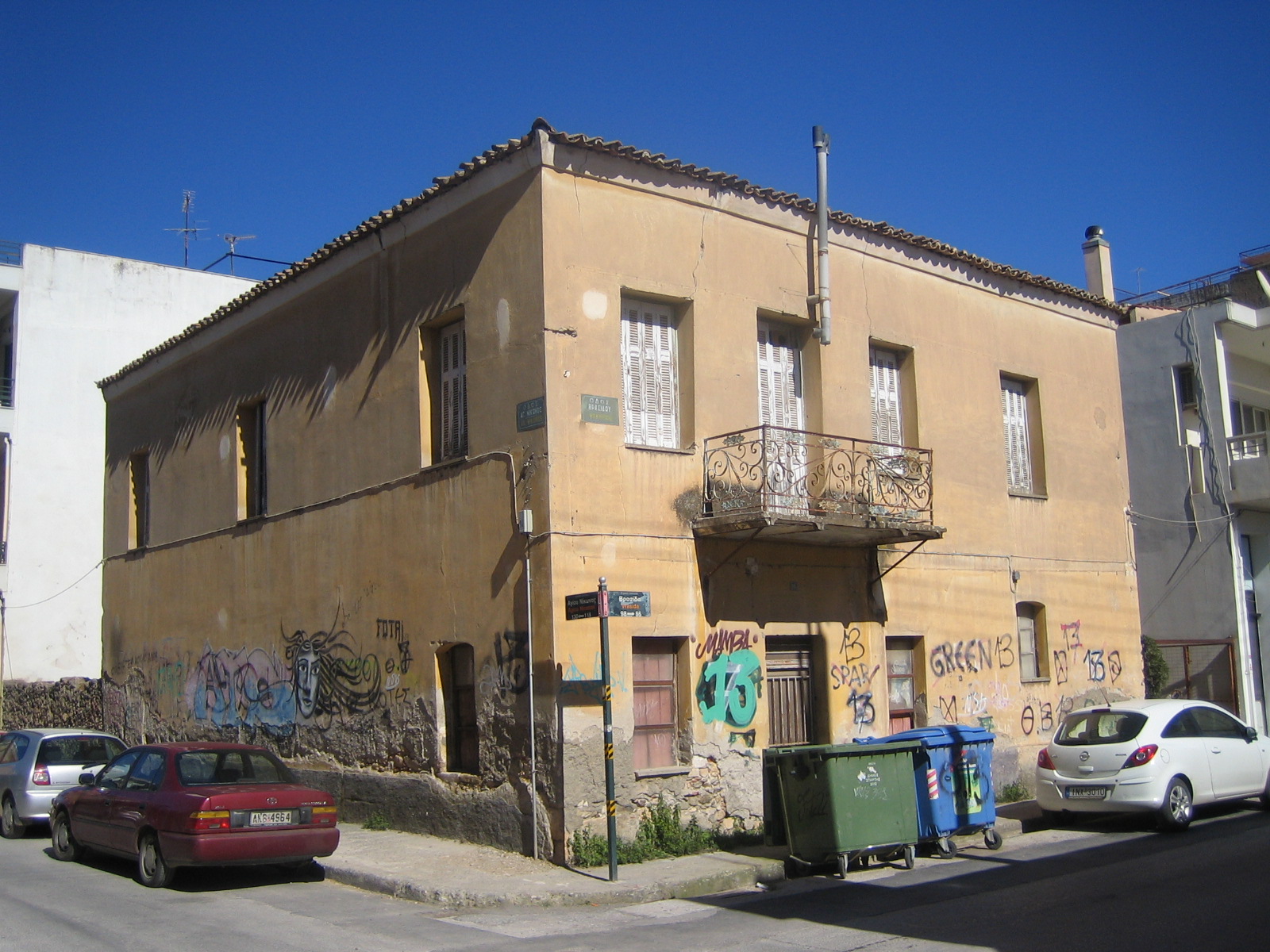 Με τον τρόπο αυτό γράφτηκε η λέξη «τέλος» και για το επιβλητικό παλαιό σπίτι στη διασταύρωση Βρασίδου 98 και Α. Νίκωνος 118. Ένα λιθόχτιστο, μεγάλο, σοβαρό, διώροφο σπίτι, σοβατισμένο, ίσως των αρχών του 20ου αιώνα. Μοναδικό του στολίδι το περίτεχνο κιγκλίδωμα του μπαλκονιού (καράβολα δουλεμένα στο χέρι μαζί με χυτά στοιχεία) και τα παλιά κεραμίδια που προεξείχαν, χωρίς γείσο, στην άκρη της στέγης. Παρ’ όλη τη δωρική του λιτότητα, το σπίτι αυτό, σε εντυπωσίαζε με τον όγκο και την αυστηρότητά του και με τις παλιές ώχρες, που ακόμα φώτιζαν τους τοίχους του. Στο ισόγειο είχε παράθυρα παραδοσιακά, με μικρή καμάρα στο πάνω μέρος και με εσωτερικά ξύλινα συμπαγή παντζούρια (σκιάδια). Στο πλάι του είχε μικρή αυλή και σκάλα με βεράντα για την είσοδο στον όροφο.