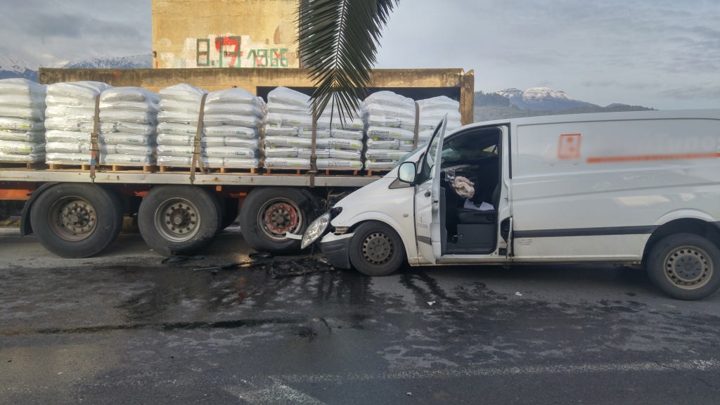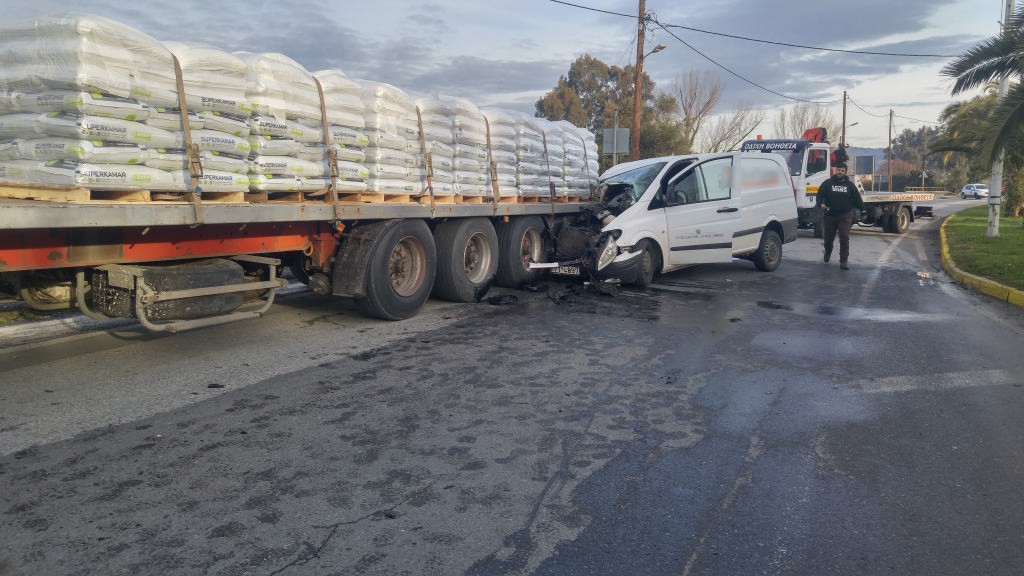 Την τύχη με το μέρος του είχε ο οδηγός ενός βαν διανομής Τύπου, το οποίο κάτω από αδιευκρίνιστες συνθήκες, προσέκρουσε στο πίσω μέρος μιας νταλίκας, λίγο μετά τη γέφυρα του Ευρώτα (προς Σπάρτη) στο ύψος του παλαιού εργοστασίου του Χυμοφίξ. Το ατύχημα σημειώθηκε περίπου στις 8 το πρωί της Πέμπτης (9/2), ενώ ο οδηγός διεκομίσθη ελαφρά τραυματισμένος στο Νοσοκομείο Σπάρτης.