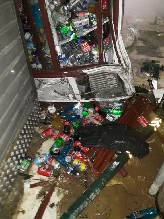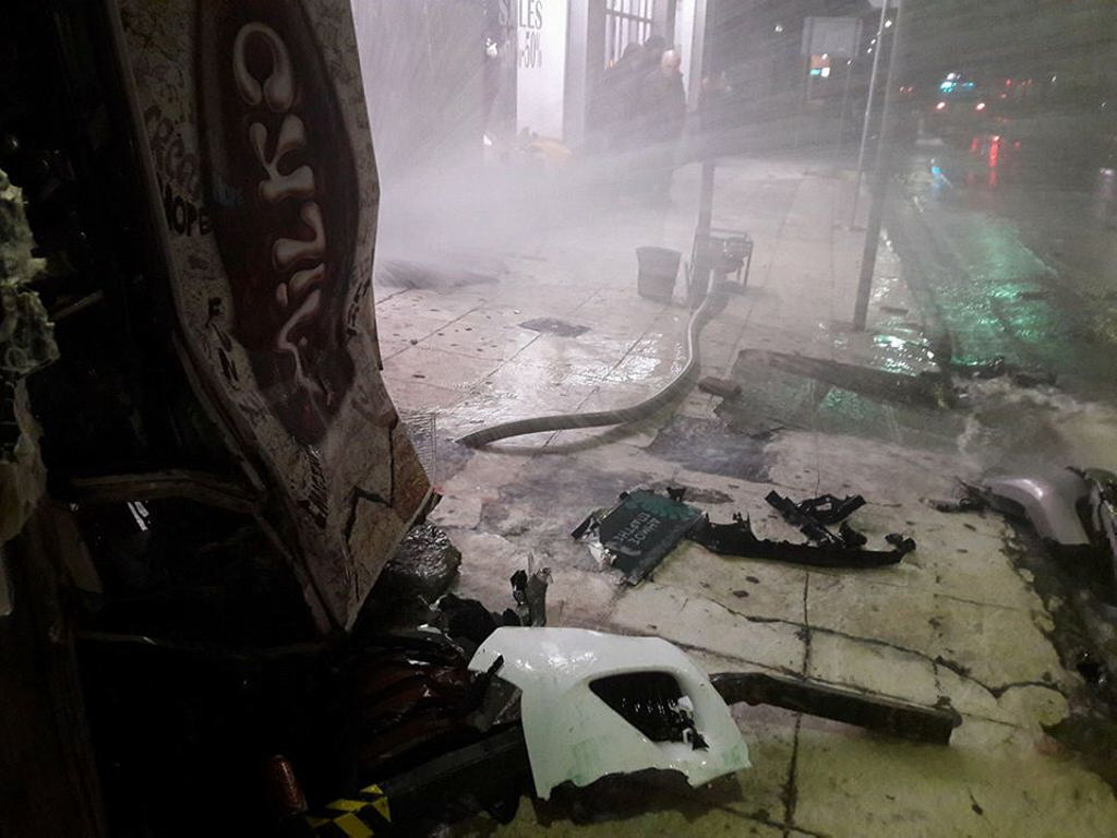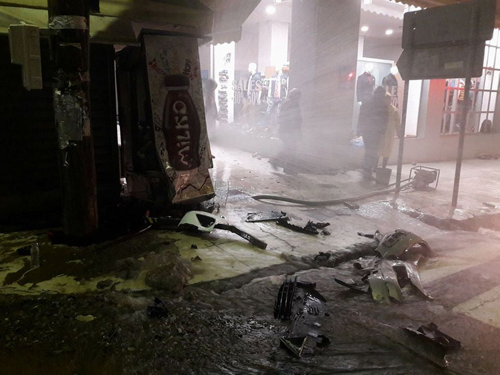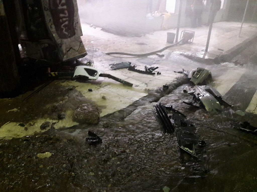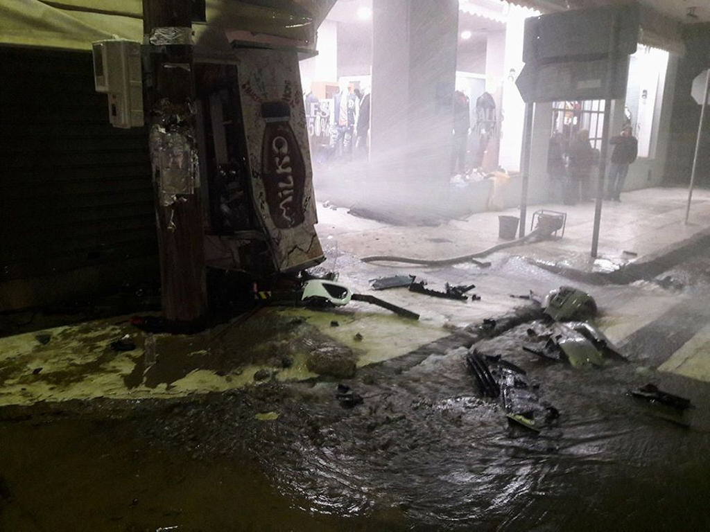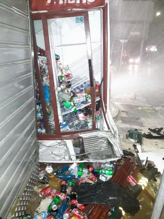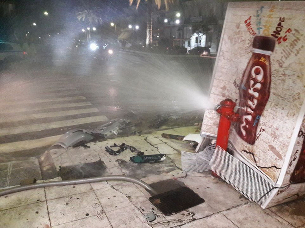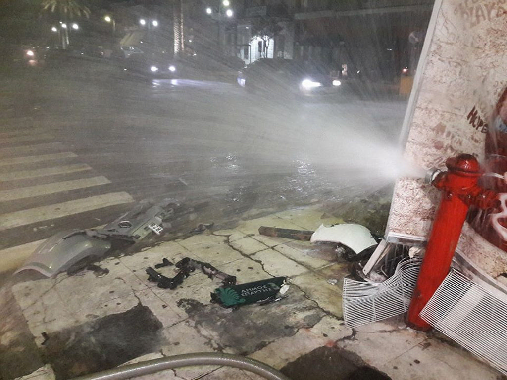 Σοβαρές υλικές ζημιές υπέστησαν τα δύο οχήματα, το ψυγείο του περιπτέρου, "ξηλώθηκε" μια δημοτική πινακίδα, ενώ από την πρόσκρουση έσπασε ένας πυροσβεστικός κρουνός, με αποτέλεσμα το νερό να αναβλύζει με πίεση και να πλημμυρίσουν οι γύρω δρόμοι.