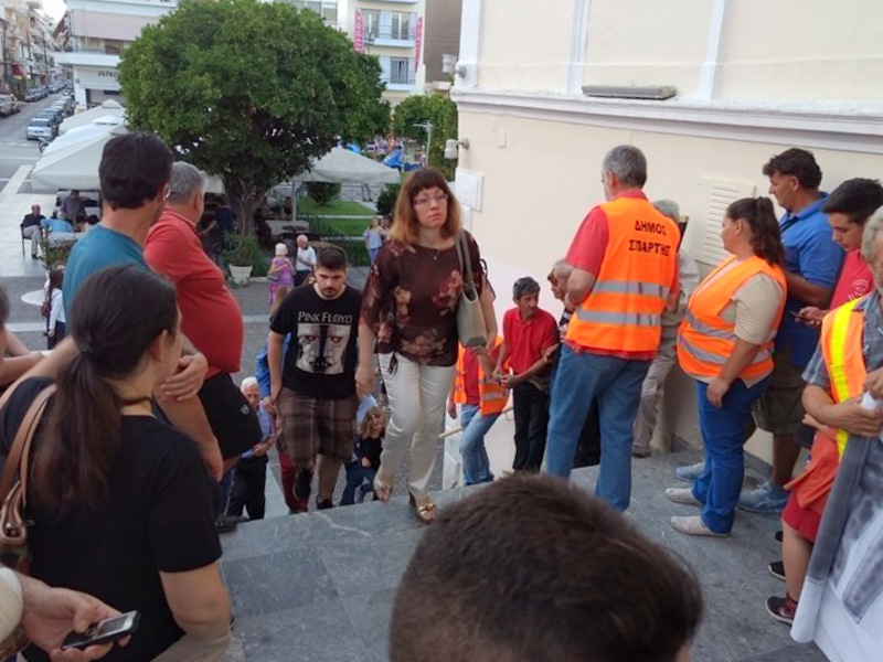 Το απόγευμα της Δευτέρας (19/6), πριν από την έναρξη του Δημοτικού Συμβουλίου Σπάρτης, εργαζόμενοι στην Υπηρεσία Καθαριότητας του Δ. Σπάρτης προχώρησαν σε παράσταση διαμαρτυρίας στην είσοδο του δημαρχείου της πόλης.