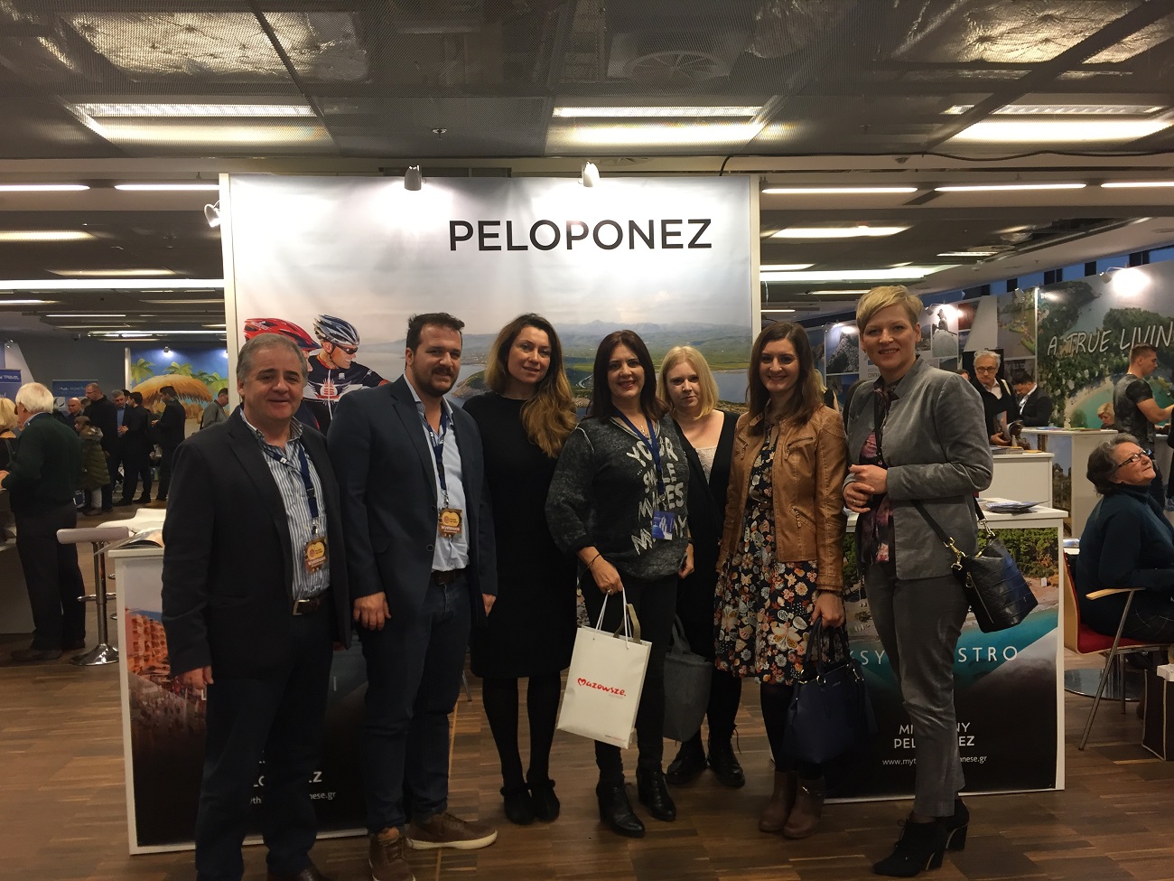 Στο περίπτερο της Περιφέρειας Πελοποννήσου η θεματική αντιπεριφερειάρχης κα. Κωνσταντίνα Νικολάκου υποδέχθηκε τους εκπροσώπους της Περιφέρειας Μαζόβια της Πολωνία, Izabela Stelmanska διευθύντρια προβολής, πολιτισμού και τουρισμού, Justyna Niedzielak, διευθύντρια του Γραφείου Επιχειρηματικής συνεργασίας και τη διευθύντρια του περιφερειάρχη Dorota Pozorek.