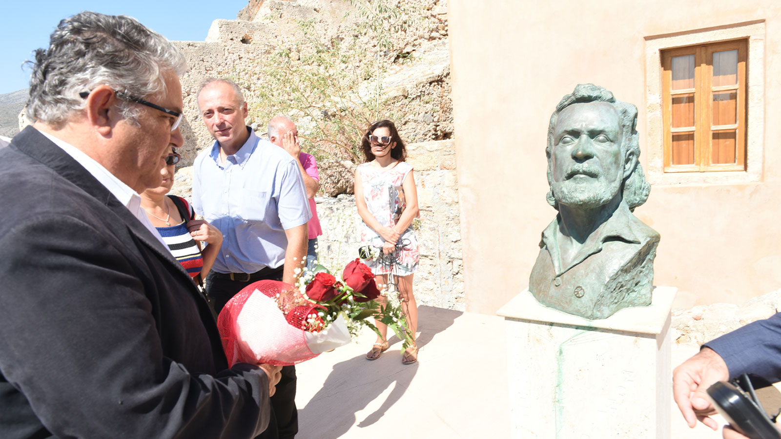 Για τον ποιητή και τα παιδικά του χρόνια στη Μονεμβασιά, μίλησε ο εκπαιδευτικός Νεκτάριος Μαστορόπουλος που ξενάγησε τον Δ. Κουτσούμπα στην παλιά πόλη μαζί με τον αντιδήμαρχο Γ. Βουνελάκη. Στην προτομή που βρίσκεται έξω από το σπίτι του Γ. Ρίτσου, ο γγ του ΚΚΕ άφησε ένα μπουκέτο τριαντάφυλλα.