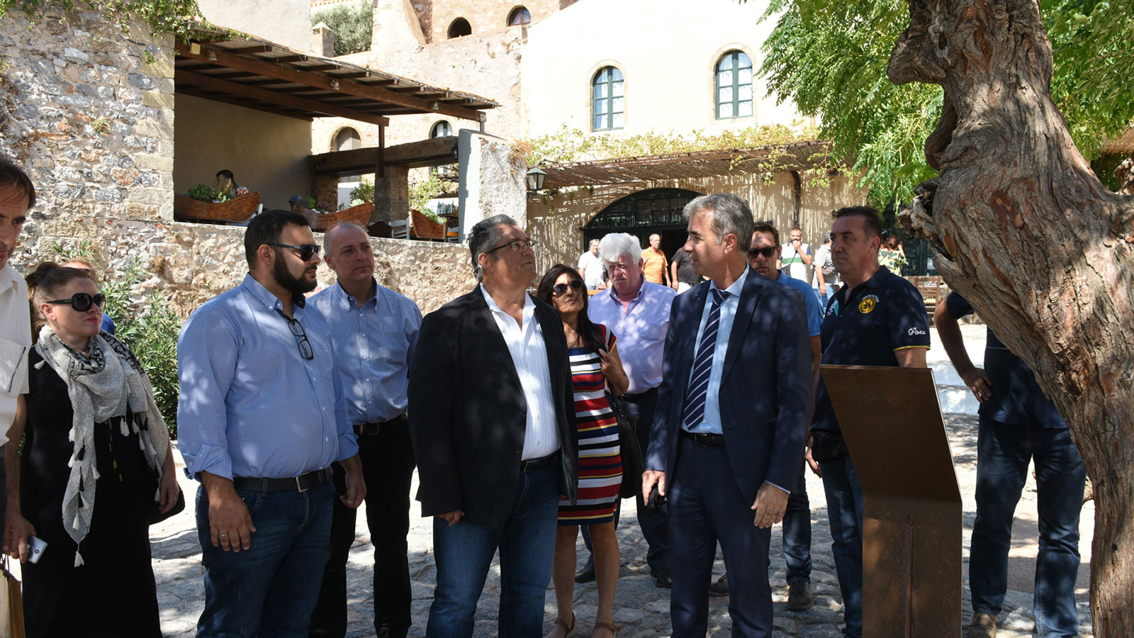 Το πρωί της Πέμπτης, ο κ. Κουτσούμπας επισκέφθηκε τη Μονεμβασιά και ξεναγήθηκε στο σπίτι του αείμνηστου Λάκωνα ποιητή Γ. Ρίτσου.
