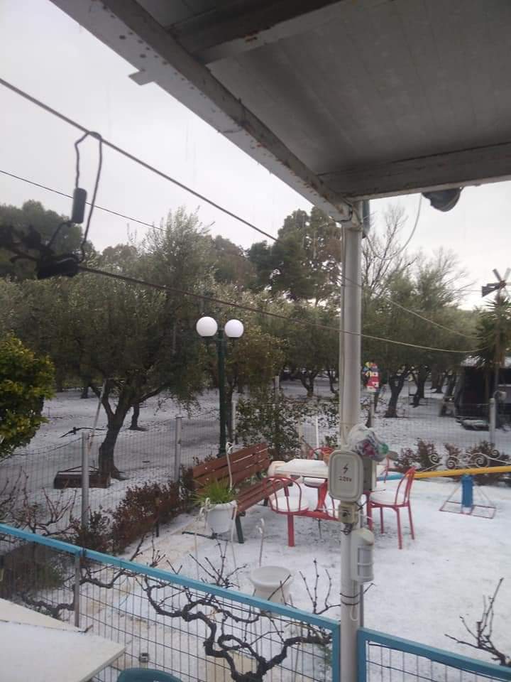 Παράλληλα, χιονοπτώσεις σημειώνονται σε ορεινές περιοχές της Λακωνίας.
