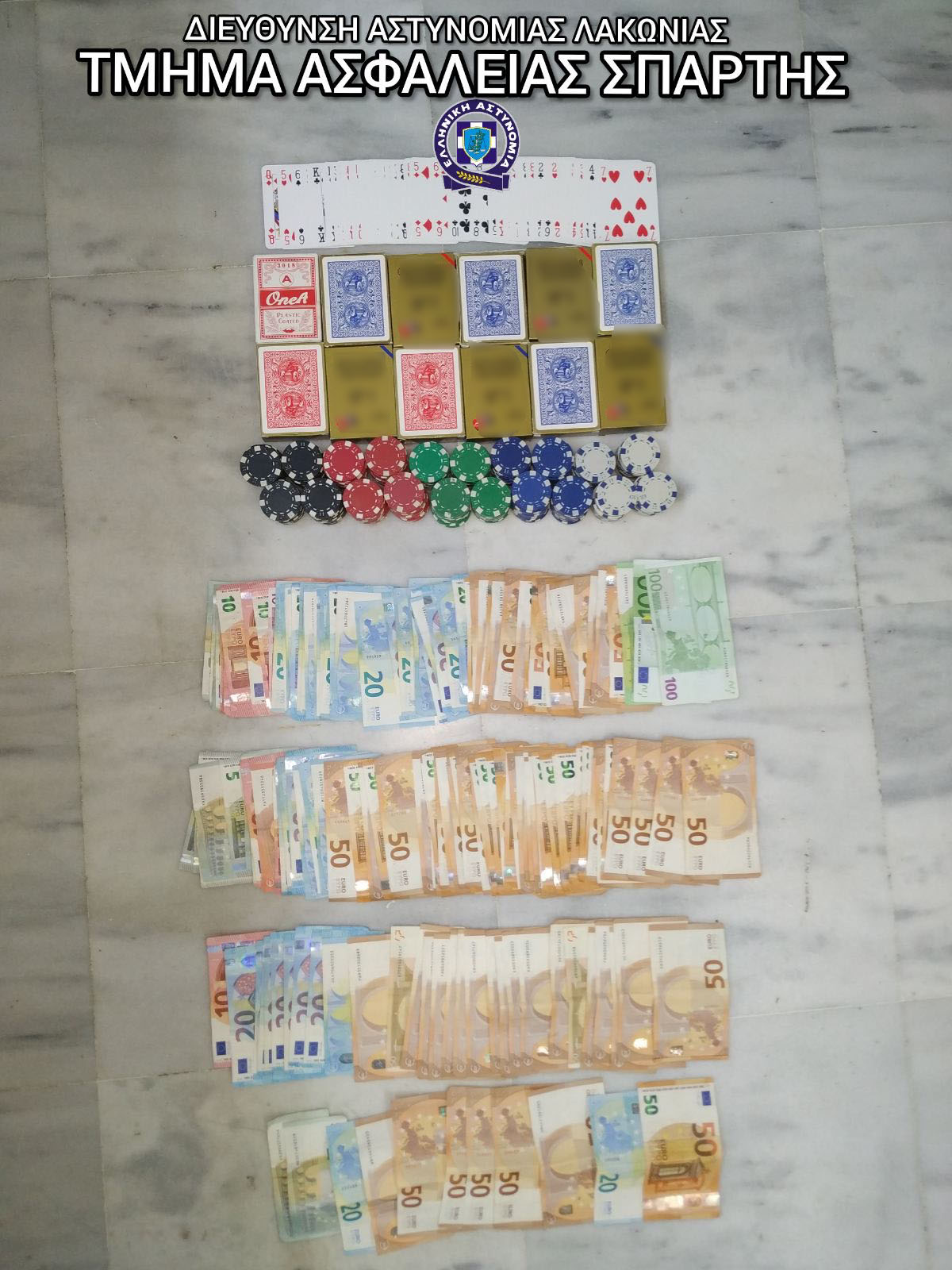 Όπως διαπιστώθηκε από τους αστυνομικούς, ο 26χρονος είχε επιτρέψει σε 6 ακόμα άτομα ηλικίας από 24 έως 51 ετών να συμμετέχουν στην παράνομη διεξαγωγή τυχερού παιχνιδιού «πόκερ».