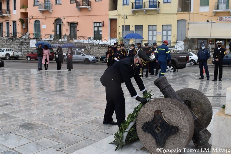 Μετά το πέρας της Δοξολογίας τελέστηκε επιμνημόσυνος δέηση στο ηρώον της πόλεως του Γυθείου ενώ πραγματοποιήθηκε κατάθεση στεφάνων.