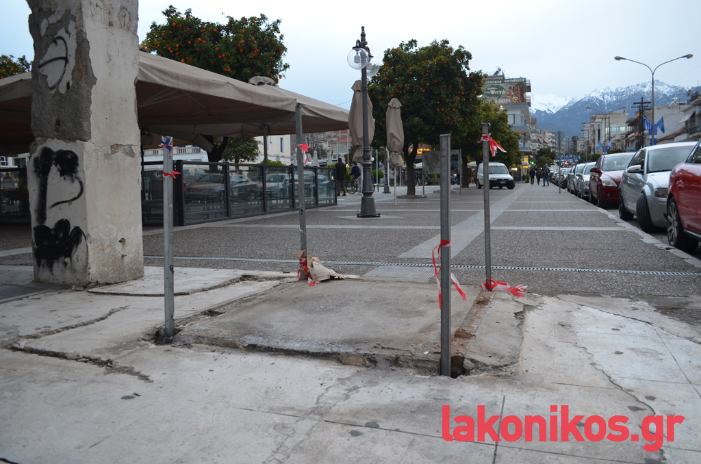Η Σπάρτη όσο πάει και ομορφαίνει, έρχεται ο καιρός που θα μοσχοβολήσουν οι νεραντζιές της Πλατείας και μικροί και μεγάλοι θα χαίρονται τον ερχομό της άνοιξης κάνοντας τη βόλτα τους στη μοναδική πλατεία της πόλης. Και κάπου εκεί κάτω από τις νεραντζιές οι δημότες που θα κατακλύσουν την πλατεία της πόλης θα συναντήσουν μια ακόμα εικαστική παρέμβαση, επικίνδυνη για κάθε έναν που διέρχεται από το σημείο. Τον Φεβρουάριο, τεχνικά συνεργεία του Δήμου Σπάρτης, απομάκρυναν από το πεζοδρόμιο στα νότια της Κεντρικής Πλατείας, το περίπτερο που βρισκόταν δίπλα στο καφέ «Σεβίλλη». Ωστόσο στη θέση του έχουν παραμείνει τέσσερις άκρως επικίνδυνες, καρφωμένες στο έδαφος σιδερόβεργες, των οποίων η χρησιμότητα είναι άγνωστη. Έκκληση να απομακρυνθούν τα επικίνδυνα σίδερα από το σημείο το γρηγορότερο δυνατόν, προτού κάποιος πολίτης γνωρίσει για τα καλά την επικινδυνότητά της «εικαστικής εγκατάστασης».