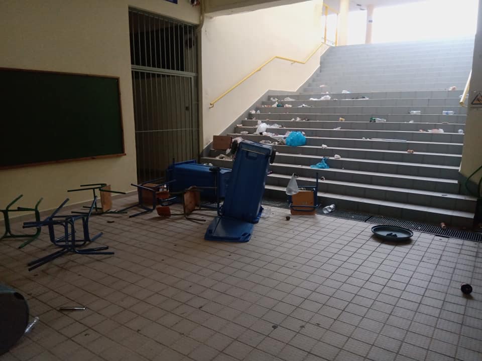 Φωτογραφίες που κυκλοφορούν στα μέσα κοινωνικής δικτύωσης αποτυπώνουν την εικόνα του 2ου Γυμνασίου Σπάρτης που έχουν αφήσει πίσω τους οι καταληψίες μαθητές.