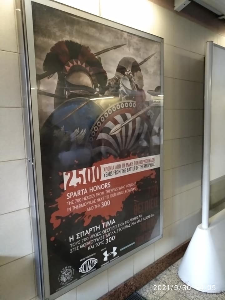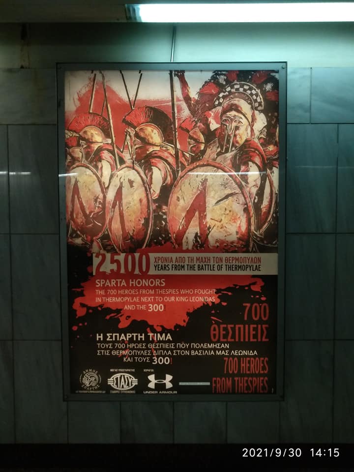 Με αφορμή των επέτειο των 2.500 ετών από τη μάχη των Θερμοπυλών, η Σπάρτη τιμά τους 700 ήρωες Θεσπιείς που πολέμησαν δίπλα στον Βασιλιά Λεωνίδα και τους 300 σε ένα από τα πιο πολυσύχναστα μέρη της Ελλάδας, στο Μετρό Αθηνών.