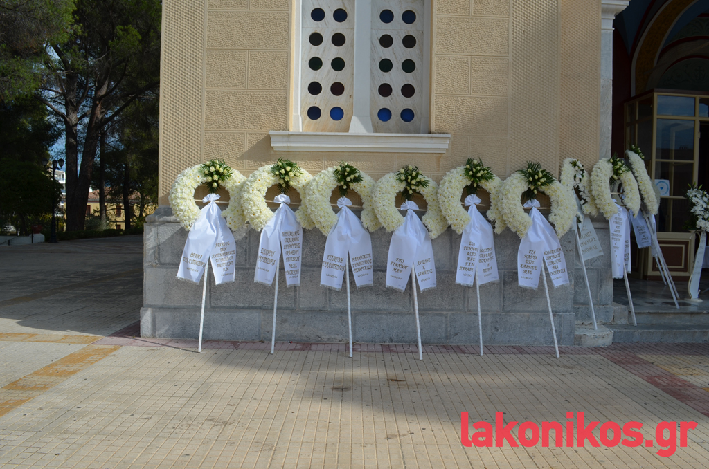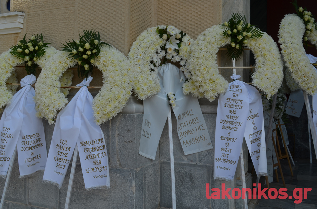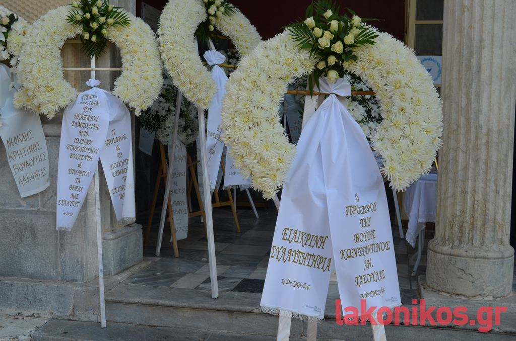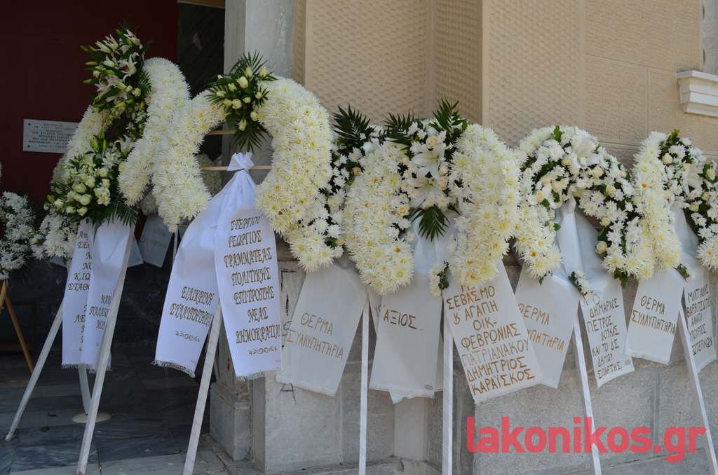 Στη νεκρώσιμο ακολουθία, παρέστησαν, μεταξύ άλλων, ο πρώην Λάκωνας υπουργός Ιωάννης Βαρβιτστιώτης, ο βουλευτής Λακωνίας Αθανάσιος Δαβάκης, ο αντιπεριφερειάρχης Λακωνίας Θεόδωρος Βερούτης, ο θεματικός αντιπεριφερειάρχης Νίκωνας Τζινιέρης, ο Δήμαρχος Σπάρτης Πέτρος Δούκας συνοδευόμενος από μέλη της Δημοτικής Αρχής, ο Δήμαρχος Ευρώτα Δήμος Βέρδος συνοδευόμενος από μέλη της Δημοτικής του Αρχής, η πρώην βουλευτής Λακωνίας Φεβρωνία Πατριανάκου, η περιφερειακή σύμβουλος Ντία Τζανετέα, ο Πρόεδρος της ΝΟΔΕ Λακωνίας Βασίλειος Ορφανός, εκπρόσωποι φορέων και συλλογικοτήτων.