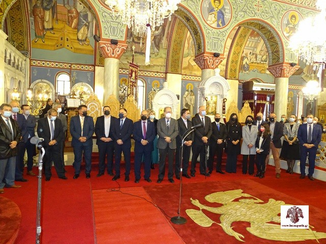 Κατακλείοντας την πανηγυρική λατρευτική σύναξη, ο Σεβασμιώτατος Μητροπολίτης κ. Ευστάθιος ευχήθηκε να θέσουμε ως στόχο της εφήμερης επίγειας ζωής μας τη σωτηρία της άφθαρτης ψυχής μας. Στη συνέχεια εξέφρασε ευγνώμονες ευχαριστίες στους Σεβασμιώτατους Μητροπολίτες Μεσσηνίας και Γλυφάδας, που ανταποκρίθηκαν στην πρόσκλησή του και πρόσφεραν πνευματική τροφή στους ευλαβείς χριστιανούς της περιοχής με τα κηρύγματά τους. Επίσης ευχαρίστησε εγκάρδια όλους όσοι λάμπρυναν τον εορτασμό με την παρουσία τους και ιδιαίτερα τους τοπικούς άρχοντες, τους εφημέριους και τους λοιπούς διακονούντες του Ιερού Ναού, τον ευαγή Κλήρο, τους καλλικέλαδους ιεροψάλτες και τους ευσεβείς πιστούς. Ξεχωριστές ευχαριστίες απηύθυνε προς τον Ραδιοφωνικό Σταθμό της Εκκλησίας της Ελλάδος για την αναμετάδοση τόσο του Εσπερινού όσο και της Θ. Λειτουργίας.