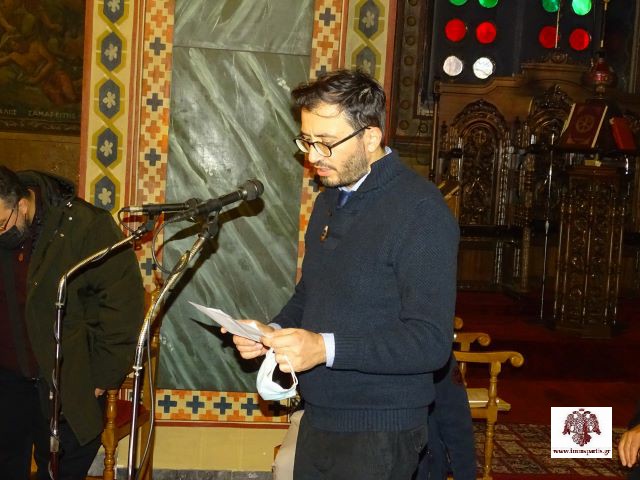 Εκ μέρους του εκπαιδευτικού προσωπικού μίλησε ο καθηγητής κ. Βασίλειος Θεοδωρακάκος, ο οποίος, αφού πρώτα ευχαρίστησε με τη σειρά του τον Μητροπολίτη Ευστάθιο και συνεχάρη τους τελειόφοιτους, προέβη σε επισημάνσεις για την ιδιαιτερότητα της τέχνης της αγιογραφίας.
