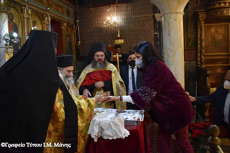 Μετά το πέρας της Δοξολογίας ο Σεβ. Ποιμενάρχης μας, ευχήθηκε, ευλογημένη χρονιά από το Θεό, ενώ προηγουμένως ανεγνώσθη, υπό του προϊσταμένου του Ι. Ναού και Γενικού Αρχιερατικού Επιτρόπου π. Νήφωνος Καρολεμέα, το μήνυμα του Σεβ. προς τους Μανιάτες του εξωτρικού με την ευκαιρία της πρωτοχρονιάς 2022. (Πατήστε εδώ.)