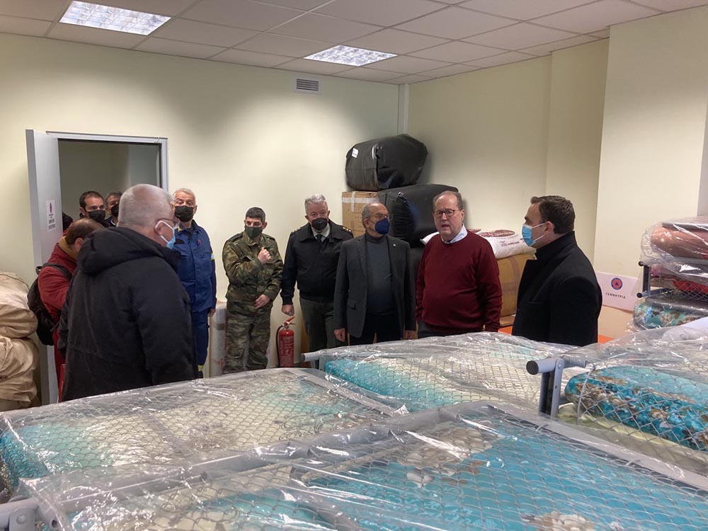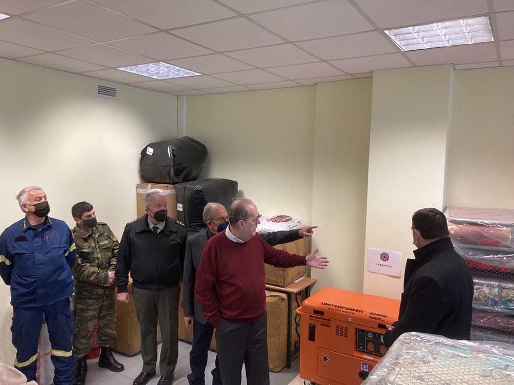 Πρώτη στάση του κ. Νίκα, ήταν ο Διοικητήριο της Περιφερειακής Ενότητας Λακωνίας, στη Σπάρτη, όπου παρουσίασε τις πλήρως εφοδιασμένες αποθήκες Πολιτικής Προστασίας της περιφέρειας ενώ διένειμε υλικό και είδη πολιτικής προστασίας σε εκπροσώπους εθελοντικών οργανώσεων του νομού.