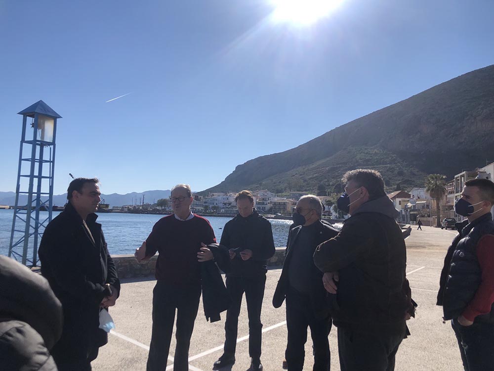 Ακολούθησε αυτοψία στα έργα που υλοποιεί η Περιφέρεια στη μαρίνα και το λιμάνι, κατά την οποίαν εξετάστηκαν τα σε εξέλιξη ευρισκόμενα έργα στον βράχο, δηλαδή η αρχαιολογική έρευνα, ο φωτισμός του κάστρου και η πρόσβαση στον εν λόγω εμβληματικό χώρο.