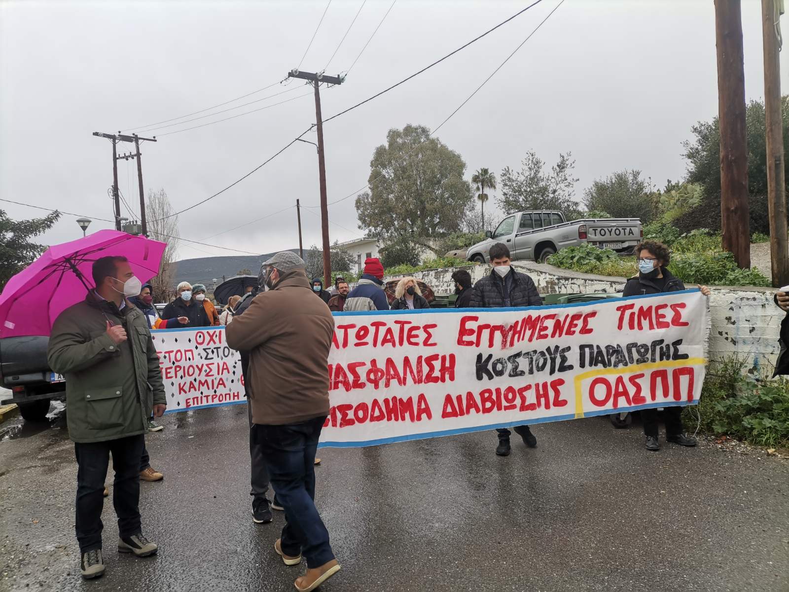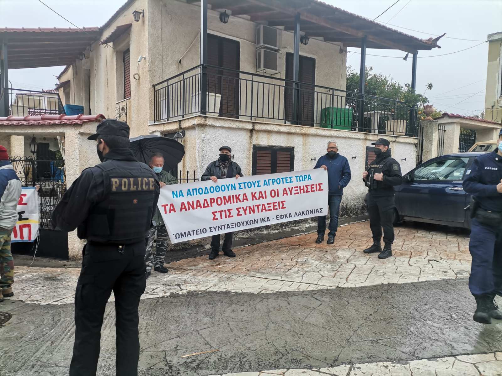 Στην κινητοποίηση πήραν μέρος η επιτροπή αγώνα ενάντια στην κατασκευή μονάδας ΜΕΑ-ΧΥΤΥ στην περιοχή της Σκάλας και το Σωματείο ΙΚΑ-ΕΦΚΑ Λακωνίας.
