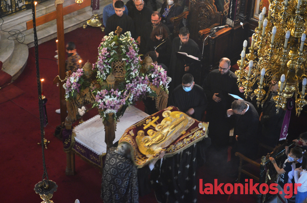 Με την πρέπουσα θρησκευτική ευλάβεια η Σπάρτη βίωσε για ακόμα μια χρονιά τον «Επιτάφιο Θρήνο». Το βράδυ της Μ. Πέμπτης (21/4), σε κλίμα κατάνυξης τελέσθηκε στον Μητροπολιτικό Ναό Ευαγγελιστρίας, η ακολουθία των Αχράντων Παθών χοροστατούντος του σεβασμιωτάτου Μητροπολίτη Μονεμβασίας και Σπάρτης κ. Ευσταθίου. Πλήθος πιστών κατέκλυσε τον ναό για να προσκυνήσει τον Εσταυρωμένο και να συμπροσευχηθεί.
