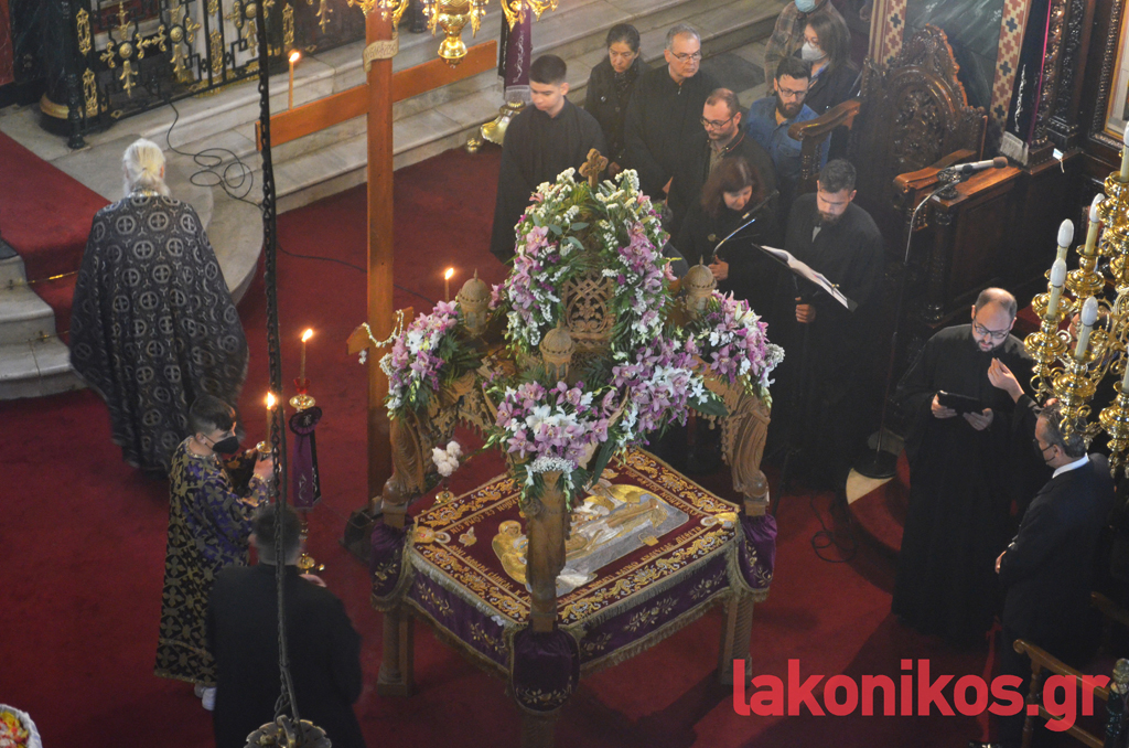 Σε έντονα συγκινησιακό κλίμα τελέσθηκαν το πρωί της Μ. Παρασκευής (22/4), στον Ιερό Ναό Οσίου Νίκωνος Σπάρτης, η ακολουθία των Μεγάλων Ωρών και ο εσπερινός της Αποκαθηλώσεως, χοροστατούντος του σεβασμιωτάτου Μητροπολίτη κ. Ευσταθίου.