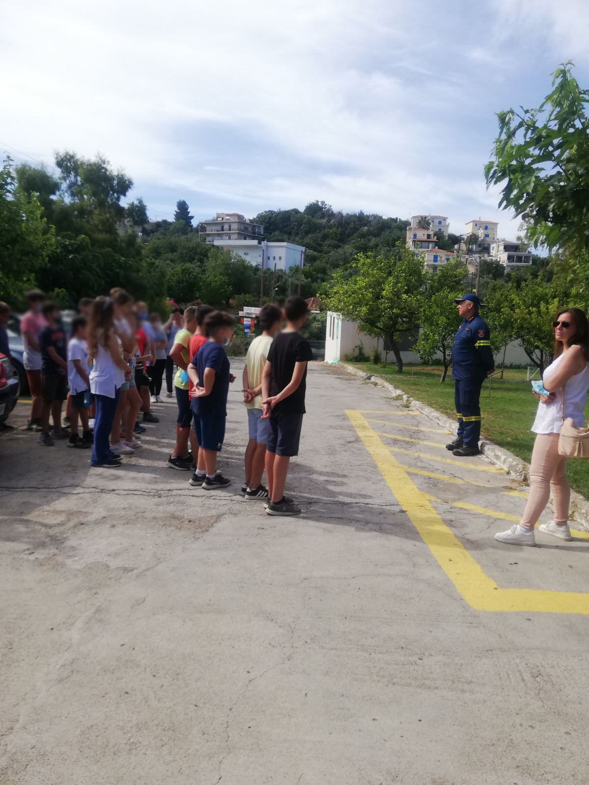 Τέλος, οι μαθητές ξεναγήθηκαν στα μέρη του πυροσβεστικού οχήματος και αισθάνθηκαν με ενθουσιασμό για λίγο ως «ήρωες πυροσβέστες» κρατώντας τον πυροσβεστικό αυλό.