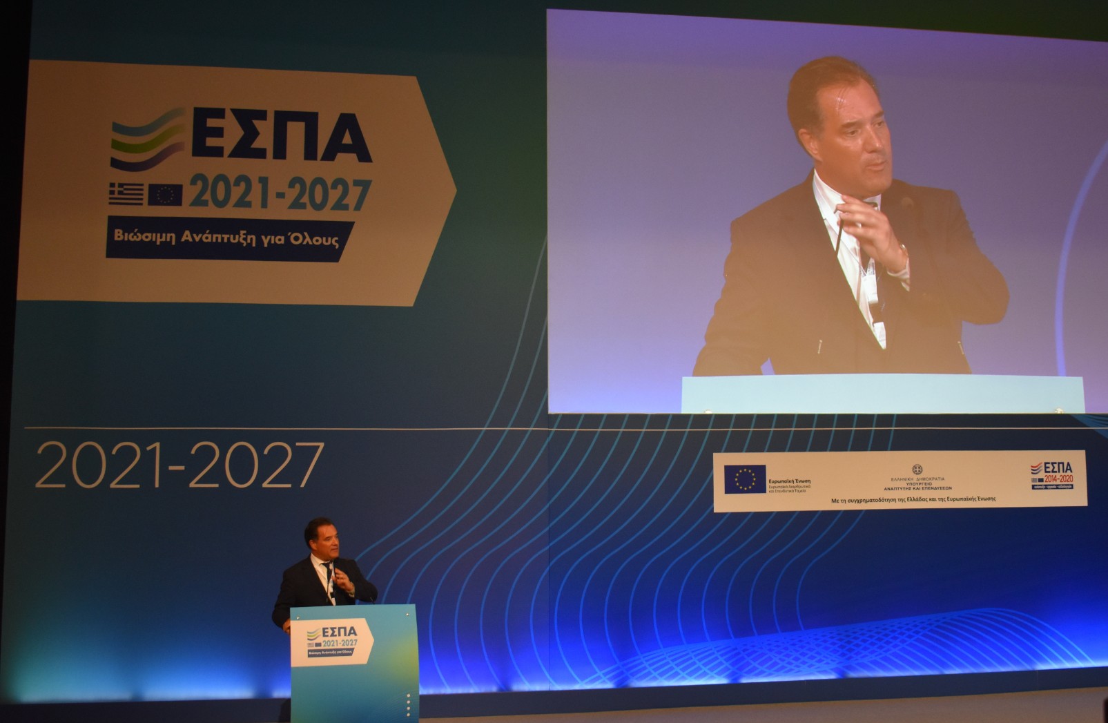 «Είμαστε η πρώτη χώρα σε όλη την Ευρωπαϊκή Ένωση που έχουμε πλέον εγκεκριμένα προγράμματα τα οποία θα τεθούν σε εφαρμογή τις αμέσως επόμενες μέρες και θα είμαστε η πρώτη χώρα σε όλη την Ευρωπαϊκή Ένωση που θα έχουμε εκταμίευση χρημάτων από τη νέα προγραμματική περίοδο μέσα στο 2022» τόνισε ο υπουργός Ανάπτυξης και Επενδύσεων Άδωνις Γεωργιάδης, υπογραμμίζοντας πως η νέα προσπάθεια «αποτελεί ένα μεγάλο εθνικό στοίχημα να συνεχίσουμε και να εντείνουμε την προσπάθειά μας για να απορροφήσουμε γρηγορότερα τους πόρους από το νέο ΕΣΠΑ και για την πράσινη ανάπτυξη και την βιώσιμη ανάπτυξη, για την έρευνα και την τεχνολογία». Σύμφωνα με τον ίδιο, το νέο ΕΣΠΑ αποτελεί «ένα εργαλείο με το οποίο αποδεικνύεται έμπρακτα ότι η ένταξη της χώρας στην ευρωπαϊκή οικογένεια ωφελεί την καθημερινότητα όλων των ανθρώπων, ωφελεί την καθημερινότητα του ελληνικού λαού και δικαιώνει και την παράταξη της Νέας Δημοκρατίας για την ιστορική μας επιλογή πριν από 40 χρόνια να βάλουμε την Ελλάδα στην ευρωπαϊκή οικογένεια».