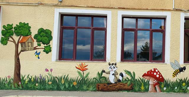 «Άχρωμοι» εξωτερικοί τοίχοι, μέσα από υπέροχες ζωγραφιές με παιδικά σχέδια κι έντονα χρώματα, αποκτούν άλλο ύφος και υπόσταση και «μεταμορφώνονται» σε επιφάνειες που μαγνητίζουν τα βλέμματα, γοητεύουν και «γεννούν» συναισθήματα ευφορίας σε μικρούς και μεγάλους.