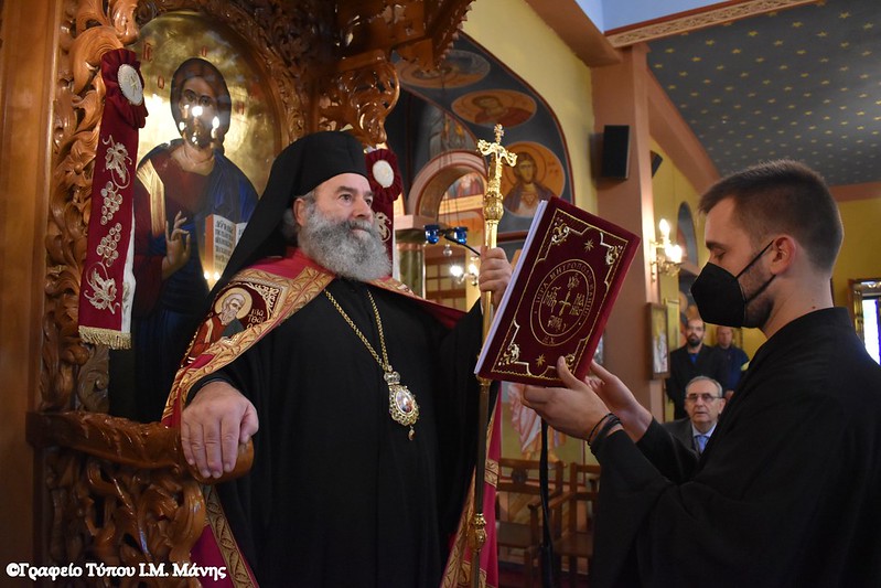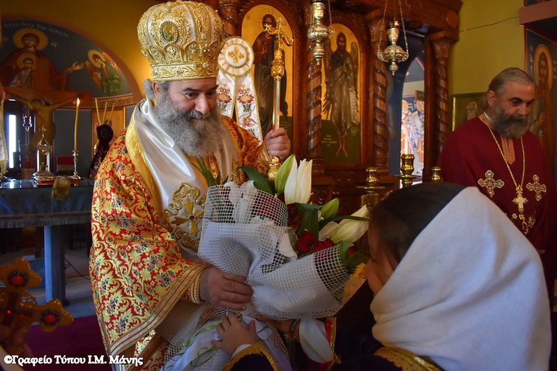 Μετά το πέρας της Λειτουργίας, στην οποία συμμετείχαν ιερείς της Μάνης, ο κ. Χρυσόστομος Γ΄ δέχθηκε τις ευχές των πιστών.