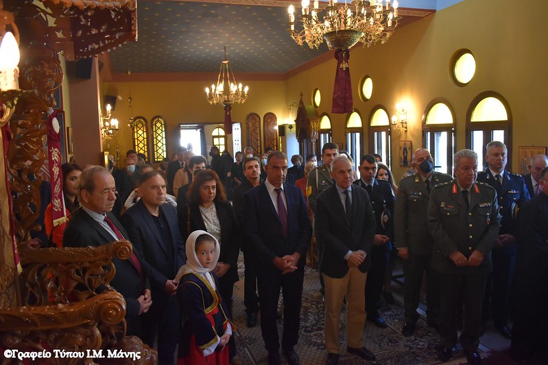 Μεταξύ άλλων παρέστησαν οι βουλευτές Λακωνίας κκ Δαβάκης και Κρητικός, ο δήμαρχος Αν. Μάνης κ. Ανδρεάκος, οι αντιδήμαρχοι κκ Δρακουλάκου και Κουμεντάκος, η πρόεδρος του Δημοτικού Συμβουλίου κ. Λυροφώνη, ο ανώτατος διοικητής Φρουράς Λακωνίας, Διοικητής ΚΕΕΜ, Ταξίαρχος κ. Πολίτης, ο διοικητής 2ου Τάγματος ΚΕΕΜ Γυθείου, Αντισυνταγματάρχης κ. Κυριακός, ο διοικητής του ΑΤ Γυθείου, Αστυνόμος Α’ κ. Βασιλάκος και ο διοικητής της ΠΥ Γυθείου, Αντιπύραρχος κ. Γραφάκος. Ακόμη, παρέστησαν η Εισαγγελέας Πρωτοδικών Γυθείου κ. Γυπαράκη, ο πρόεδρος Πρωτοδικών Γυθείου κ. Βαΐτσης, εκπρόσωποι συλλόγων και φορέων και πλήθος κόσμου.