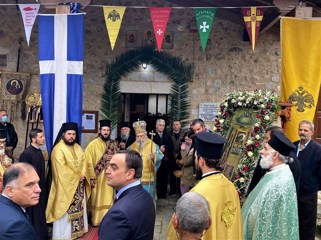 Ακολούθησε η καθιερωμένη, από τις αρχές του περασμένου αιώνα, λιτάνευση της εικόνας του Αγίου στους κεντρικούς δρόμους του Μυστρά, υπό τους παιανισμούς της Φιλαρμονικής του Δήμου Σπάρτης.