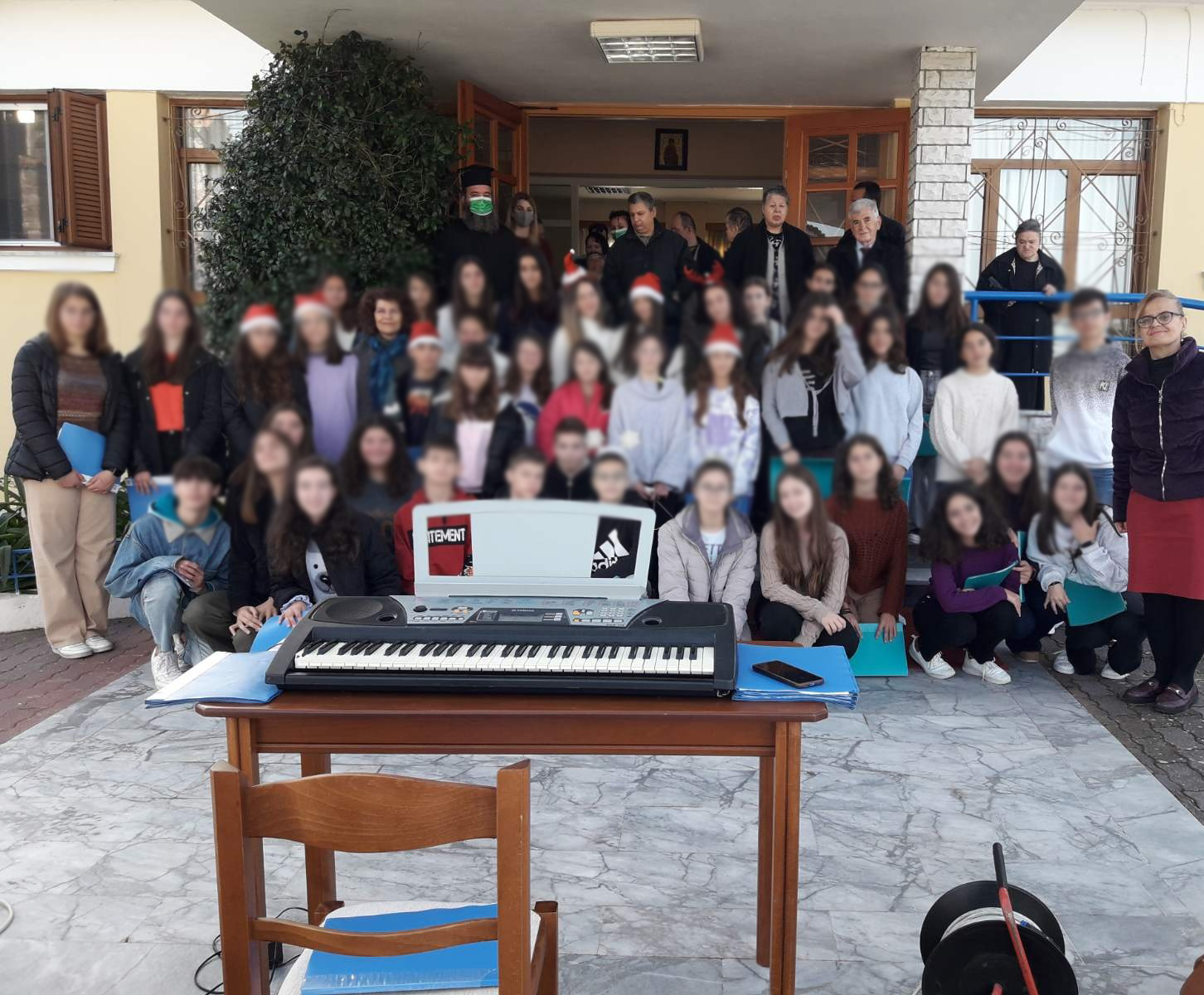 Ο διευθυντής του ιδρύματος, π. Νικόλαος Τσέτσεκας, καθώς και όλο το προσωπικό υποδέχθηκαν τις χορωδίες των μαθητών και τις συνοδούς καθηγήτριες, καλωσορίζοντας τους στον φιλόξενο χώρο. Ο π. Νικόλαος τούς ευχαρίστησε εγκαρδίως για αυτή την προσφορά τους, μέσω της οποίας «αποδεικνύεται η έμπρακτη αγάπη στις καρδιές των ανθρώπων».