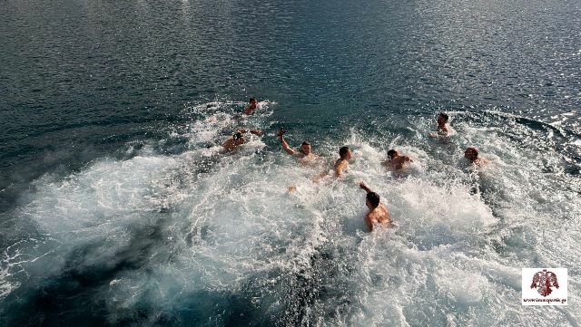 Ακολούθως, τελέσθηκε σε χαρμόσυνο κλίμα και υπό ανοιξιάτικες καιρικές συνθήκες, ο αγιασμός των υδάτων στο λιμάνι της κωμόπολης. Αρκετοί ήταν οι νέοι της περιοχής, που βούτηξαν για να πιάσουν τον Σταυρό και να δεχθούν την ευλογία Του.