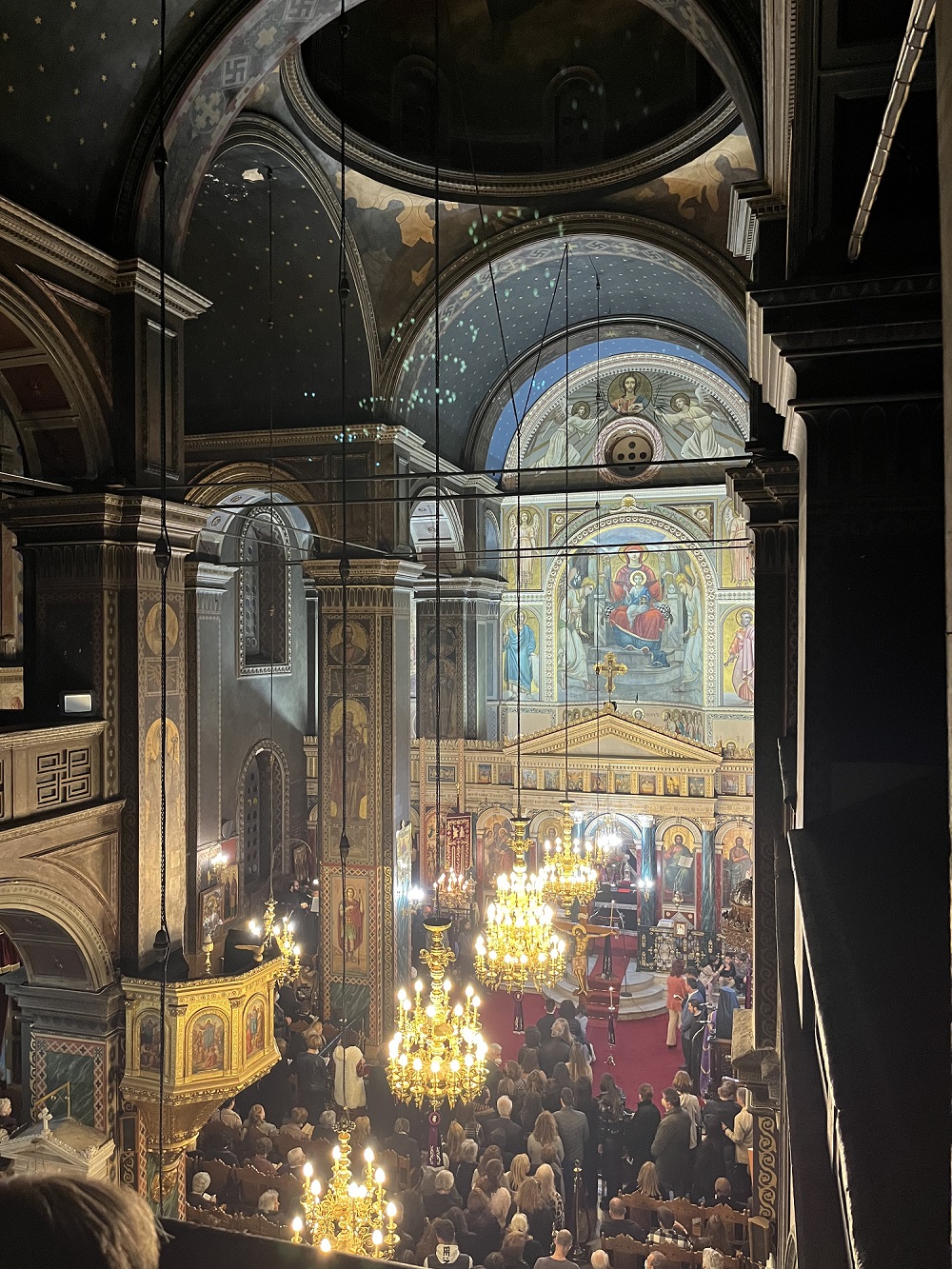 Στη συνέχεια τελέσθηκε ο εσπερινός της Αγάπης κατά τη διάρκεια του οποίου ανεγνώσθη το Ευαγγέλιο, εκτός από την ελληνική γλώσσα, στην αγγλική από τον ιεροκήρυκα της ΙΜΜΣ, πανοσ. αρχ. Ραφαήλ Τσάλτα και στη γερμανική από τον μοναχό της ΙΜ Αγίων Τεσσαράκοντα Μαρτύρων, π. Σιλουανό Σφυρίου.