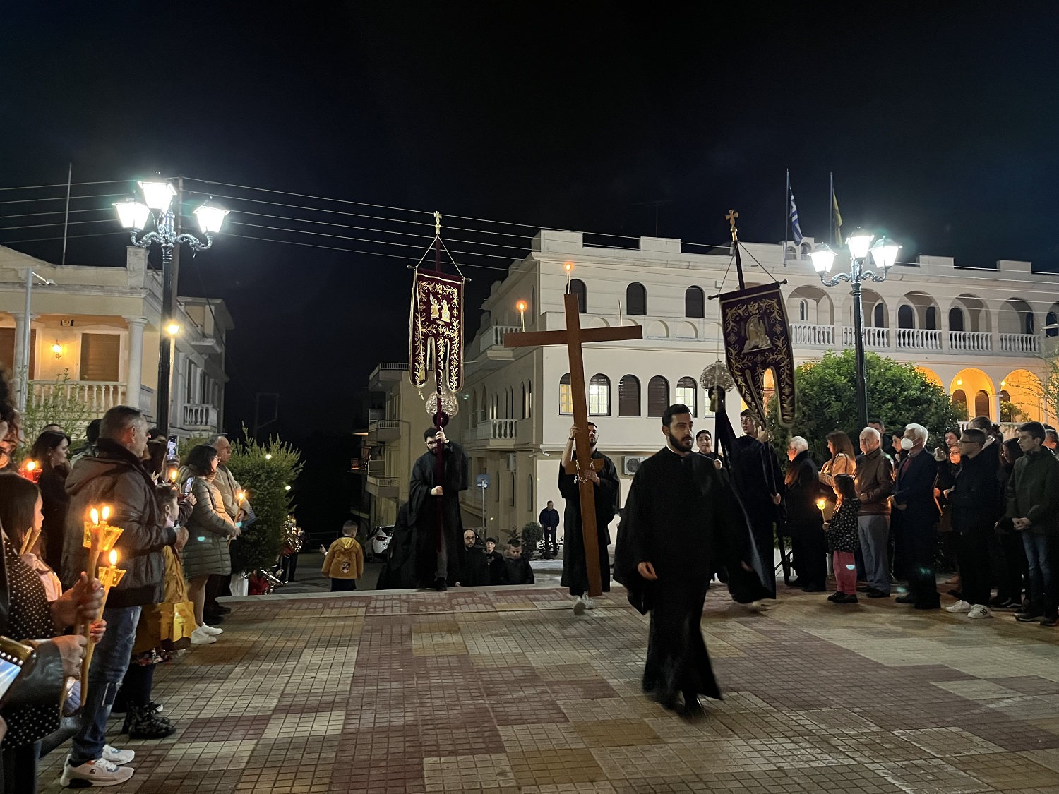 Μία ημέρα νωρίτερα, τη Μ. Παρασκευή (14/4) έγινε η περιφορά του Επιταφίου στα γραφικά καλντερίμια του κάστρου και στη συνέχεια -μέσω της μόνης έμβασης- η πομπή έφτασε στην παραλία της Γέφυρας και κατέληξε στον Ιερό Ναό του Οσίου Λεοντίου.