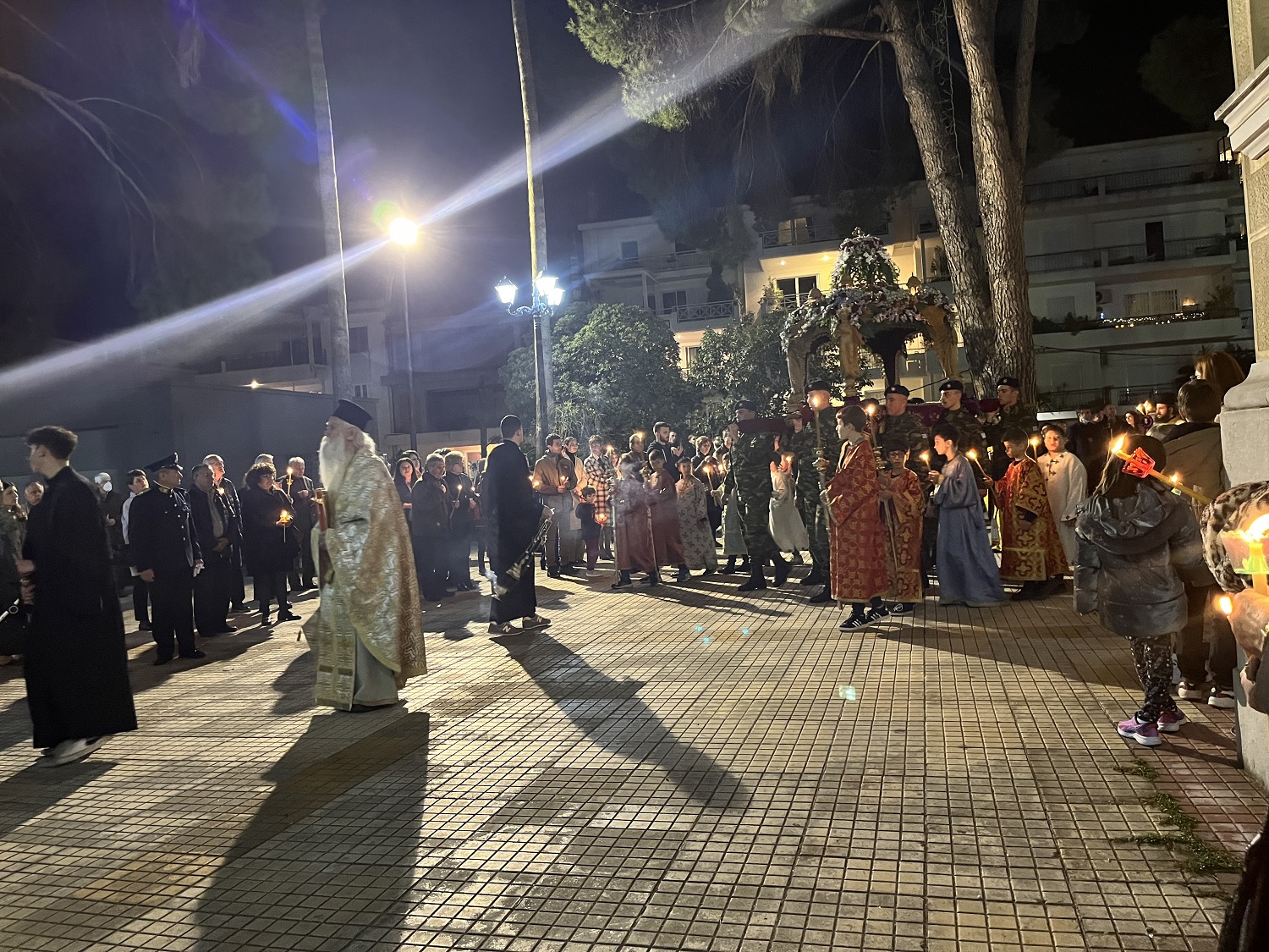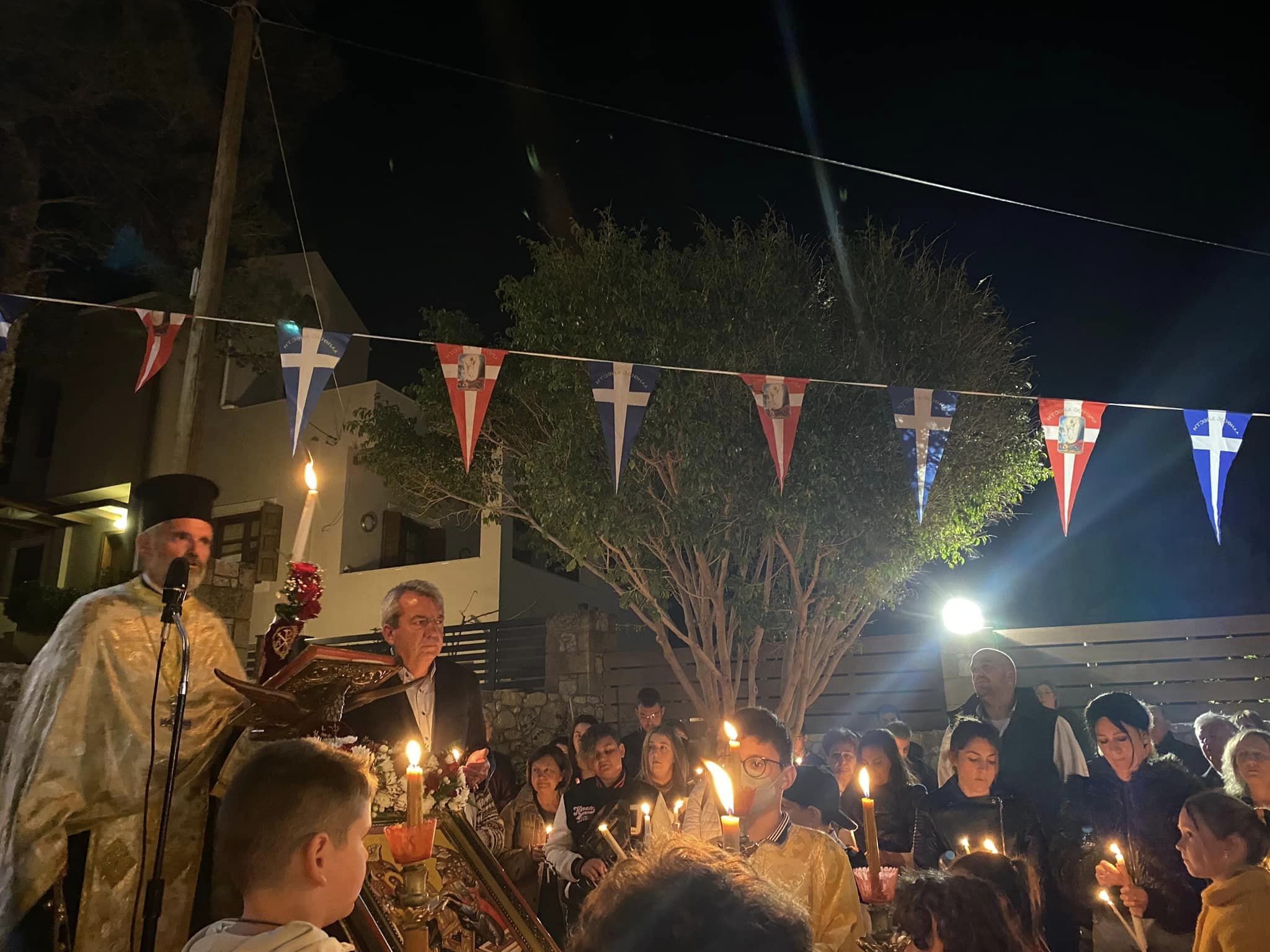Ακολούθησε λιτάνευση, γύρωθεν του ναού, των ιερών λαβάρων και της εικόνας της Αναστάσεως. Η θρησκευτική τελετή επισφραγίστηκε με τη διανομή των πασχαλινών αυγών από τον σεβασμιώτατο, καθώς και με την ανταλλαγή εγκάρδιων ευχών.