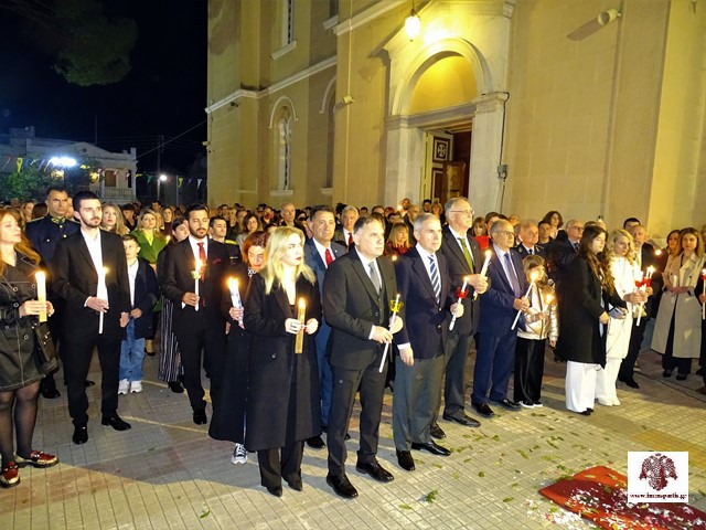 Στη συνέχεια, σε κατανυκτικό κλίμα, ξεκίνησε η περιφορά του Επιταφίου σε κεντρικούς δρόμους της Σπάρτης, προπορευομένης της Φιλαρμονικής του Δ. Σπάρτης, ενώ όπως κάθε χρόνο συνόδευε τιμητικό άγημα του Στρατού.