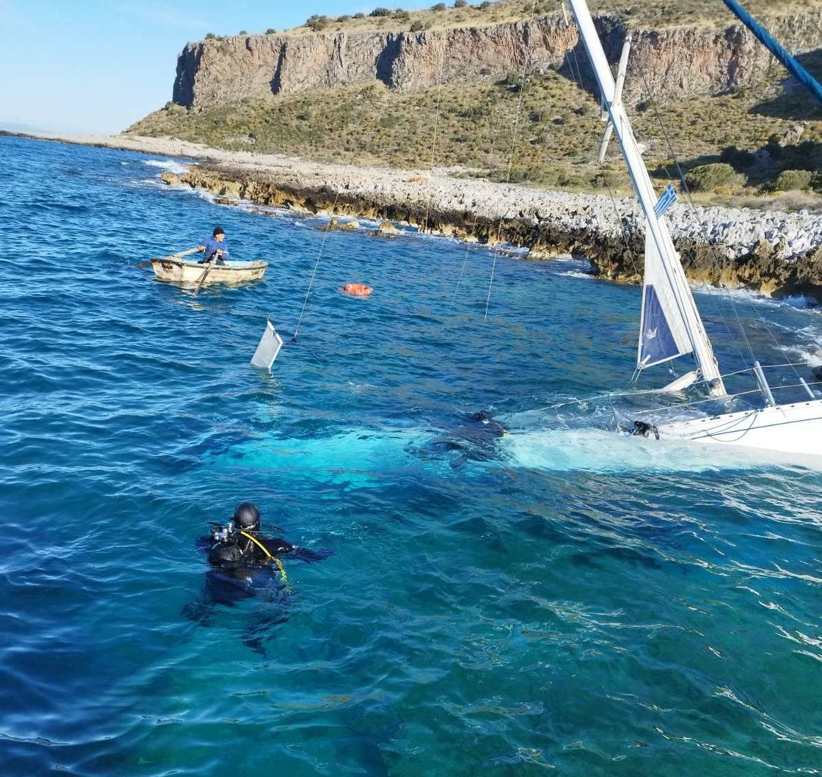 Τις πρωινές ώρες της Πέμπτης (20/4), κλιμάκιο της Μονάδας Υποβρυχίων Αποστολών (ΜΥΑ) του Λιμενικού Σώματος πραγματοποίησε υποβρύχια αυτοψία για τυχόν εντοπισμό εγκλωβισμένων, με αρνητικά αποτελέσματα. Επιπροσθέτως, στην περιοχή επιχείρησαν ένα περιπολικό σκάφος και ένα αεροσκάφος του Λιμενικού, ενώ από ξηράς, στελέχη του Λιμενικού Σώματος και της Πυροσβεστικής Υπηρεσίας «χτένισαν» την ευρύτερη περιοχή Οιτύλου προς αναζήτηση άλλων ανθρώπων που ίσως επέβαιναν στο ιστιοφόρο.