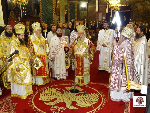 Στον Εσπερινό συμμετείχαν, ως προσκεκλημένοι του Μητροπολίτη κ. Ευσταθίου, οι σεβασμιώτατοι Μητροπολίτες, Φωκίδος κ. Θεόκτιστος και Σισανίου και Σιατίστης κ. Αθανάσιος, ο οποίος και χοροστάτησε, καθώς και πλειάδα κληρικών απ’ όλη την Μητροπολιτική περιφέρεια.