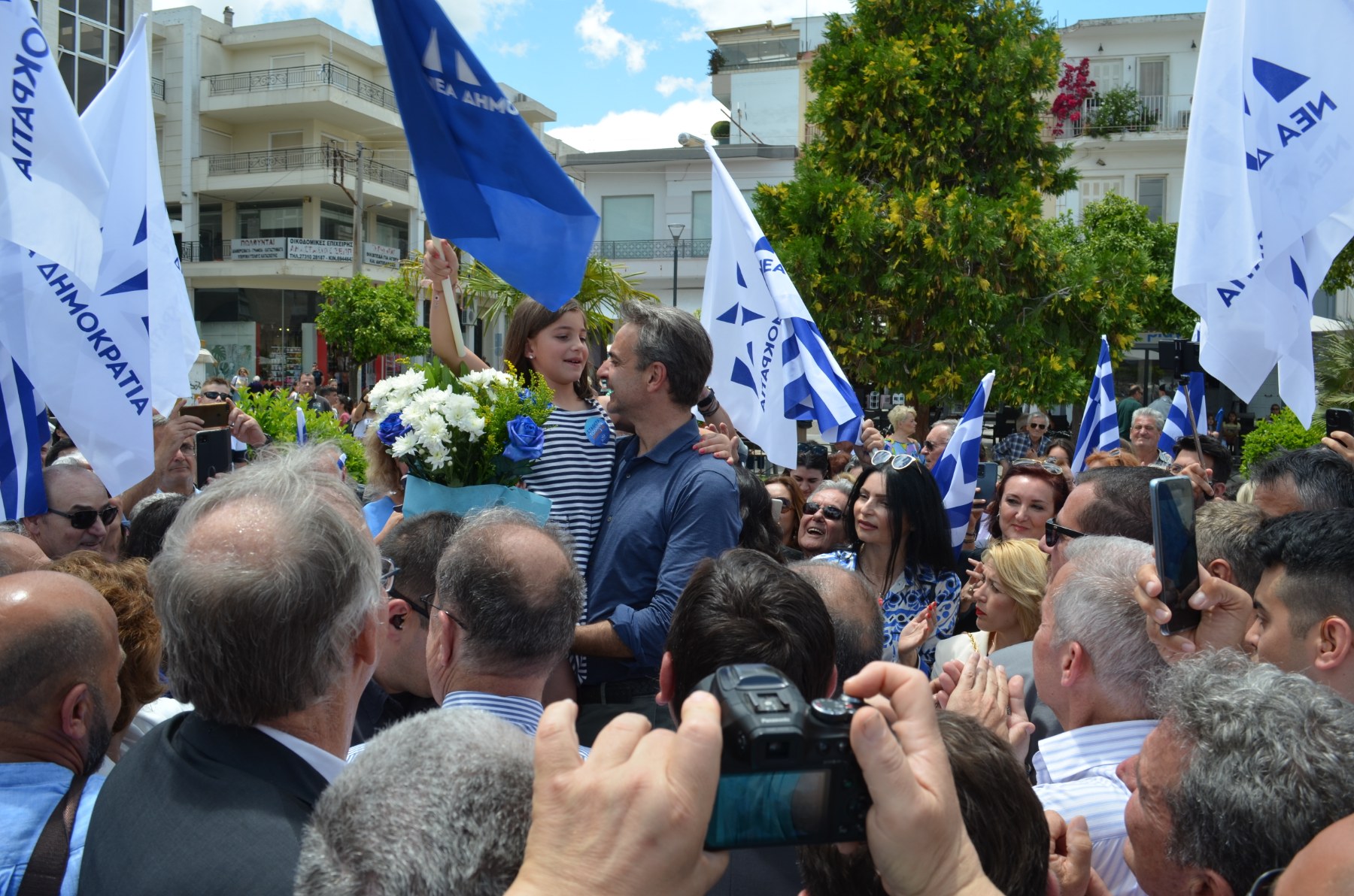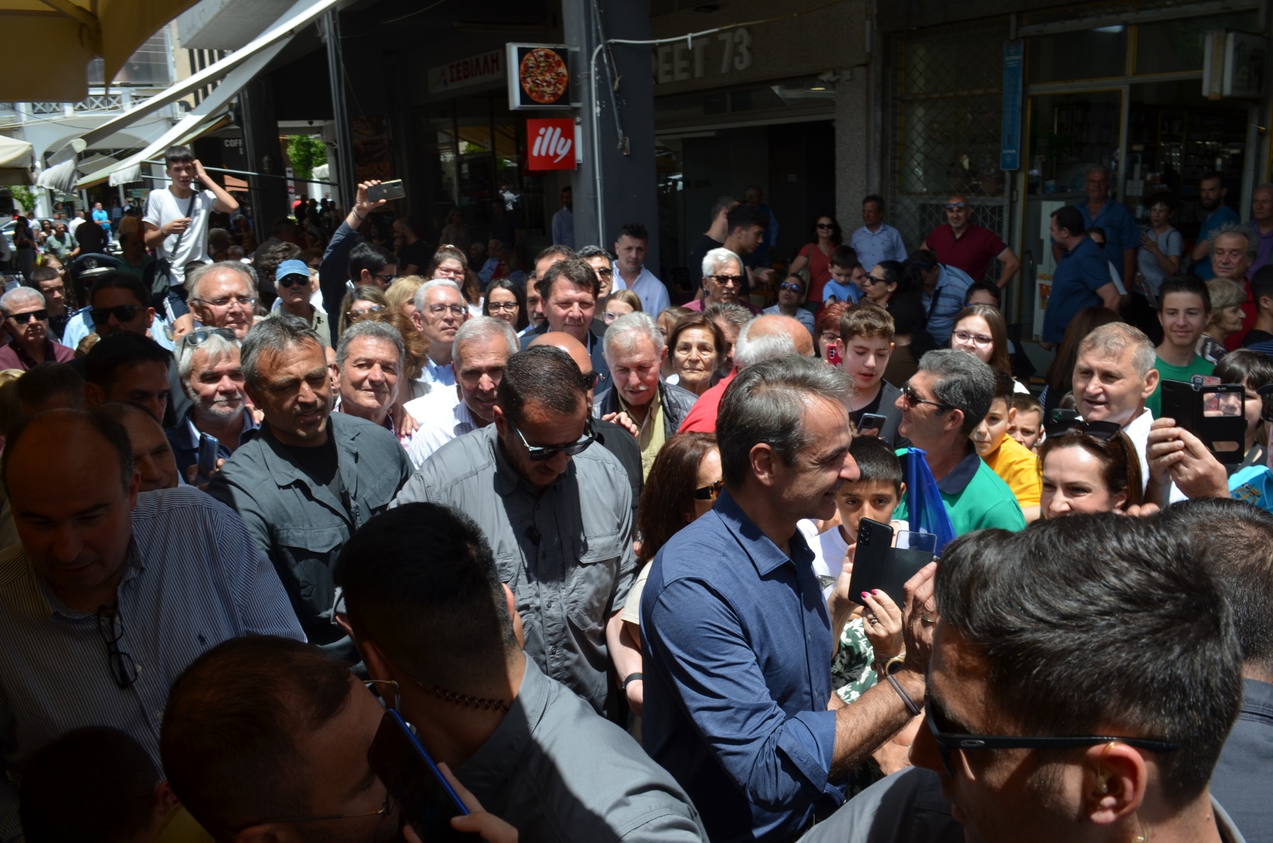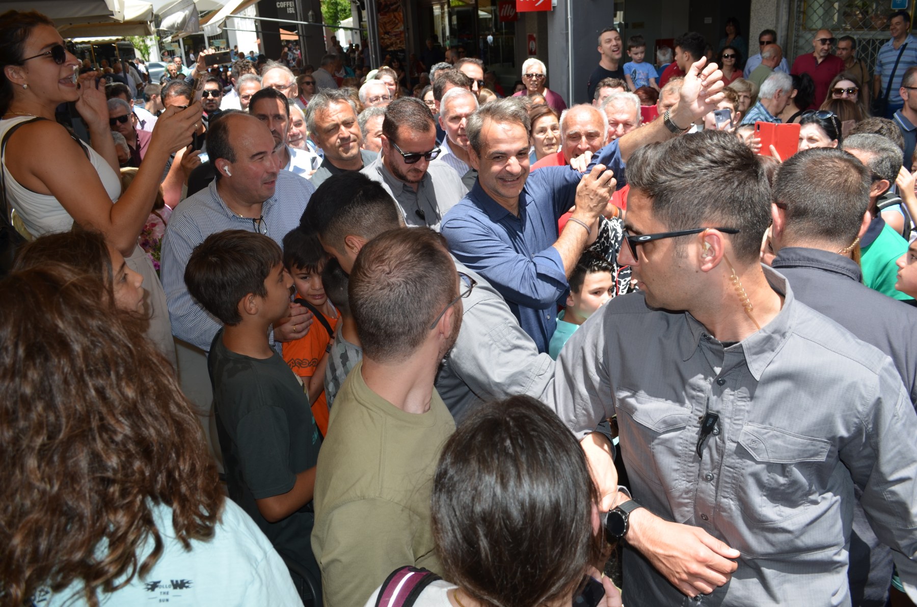 Ο πρόεδρος της ΝΔ κι εκ νέου διεκδικητής της πρωθυπουργίας έγινε αποδέκτης εκδηλώσεων αγάπης, θαυμασμού -έως και λατρείας σε κάποιες περιπτώσεις- κι ο ίδιος ανταπέδωσε με χαμόγελα και χειραψίες όλους όσοι τον πλησίασαν για να τον χαιρετήσουν και να φωτογραφηθούν μαζί του. Είναι χαρακτηριστικό ότι, από τη στιγμή της αποβίβασής του από το όχημά του επί της οδού Κ. Παλαιολόγου, ο Κυρ. Μητσοτάκης δεν σταμάτησε να γνωρίζει τις ενθουσιώδεις αντιδράσεις τόσο του κοινού που βρέθηκε στο κέντρο της πόλης για να τον καλωσορίσει, όσο και από τους θαμώνες των καταστημάτων εστίασης από τις οποίες διήλθε κατευθυνόμενος προς τον χώρο της ομιλίας του.