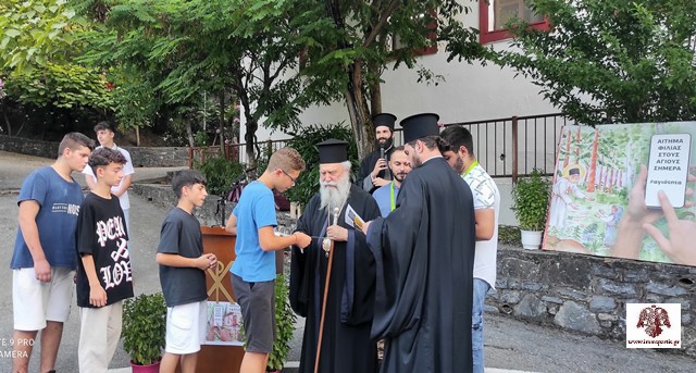 Το ευλογητικό «παρών» έδωσε στην εορτή λήξης, παρά το επιβαρυμένο πρόγραμμά του, ο σεβασμιώτατος Μητροπολίτης Ευστάθιος, απευθύνοντας πατρικούς λόγους αγάπης προς τα παιδιά και τους γονείς. Συνάμα, δεν παρέλειψε να εκφράσει και τις δικές του ευχαριστίες στον αρχηγό, τα στελέχη και σε όλους όσοι προσφέρουν στην προσπάθεια αυτή της ΙΜΜΣ, «που στοχεύει στην ψυχική ωφέλεια της νεολαίας του τόπου μας».