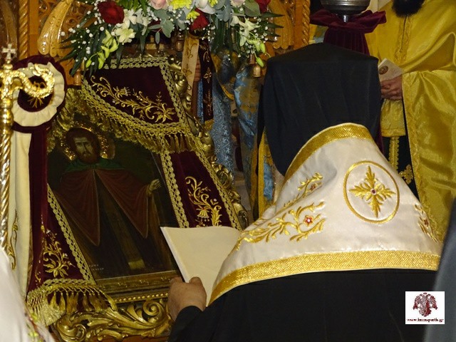 Κατά τη διάρκεια του εσπερινού έγινε η ενθρόνιση της εικόνας του Οσίου στον σολέα του ναού και εψάλλησαν οι χαιρετισμοί του. Λόγο πνευματικής οικοδομής εκφώνησε με γλαφυρότητα, ο τέως αντιπρόεδρος του Αρείου Πάγου, διοικητής του Ασύλου Ανιάτων Σπάρτης και λαϊκός ιεροκήρυκας της ΙΜΜΣ, κ. Γεώργιος Κοντός, ο οποίος αναφέρθηκε «στον καθημερινό και επίπονο αγώνα του πιστού, που οδηγεί στην σωτηρία της ψυχής».