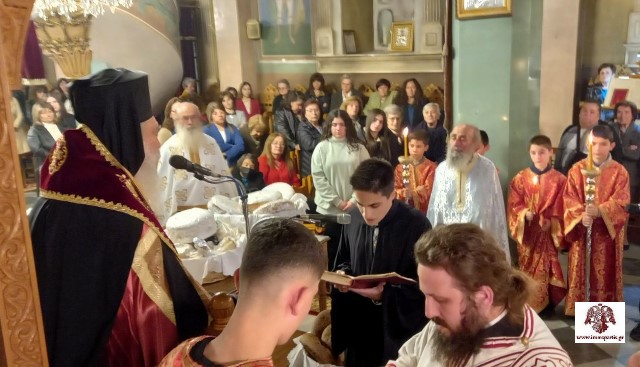 Με την ολοκλήρωση της εσπερινής λατρευτικής σύναξης, ο ποιμενάρχης πρόσφερε από μία εικόνα, ως ευλογία, στον κ. Λάζαρο Νοχό, ο οποίος διακονεί την Ενορία, για περισσότερα από σαράντα χρόνια, από την θέση του Επιτρόπου, καθώς και στις κυρίες Αντωνία Βουλουμάνου και Ειρήνη Γρίβα, οι οποίες για πενήντα περίπου έτη προσφέρουν τις πολύτιμες υπηρεσίες τους από το αναλόγιο του ναού.