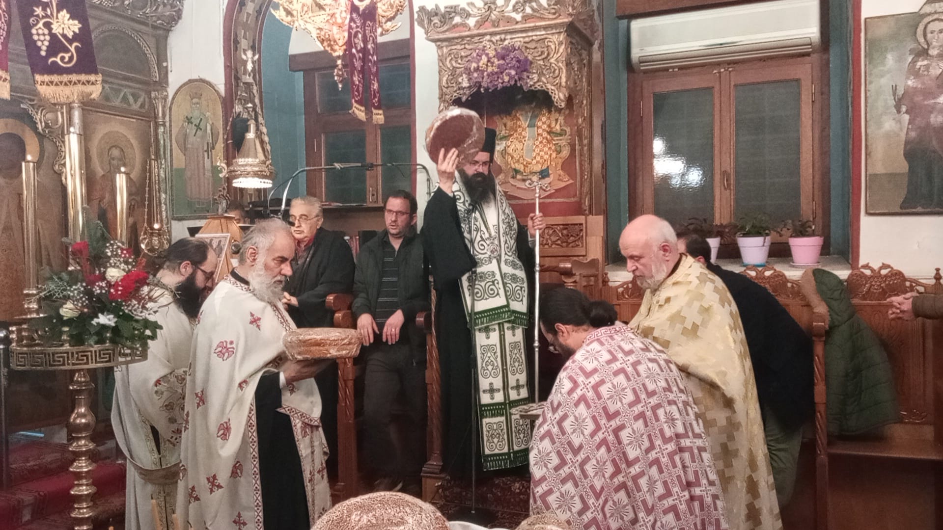 Το απόγευμα της παραμονής της εορτής, Δευτέρα (11/12), εψάλη ο πανηγυρικός αρχιερατικός εσπερινός μετ’ αρτοκλασίας, χοροστατούντος του θεοφιλεστάτου Επισκόπου Λακεδαιμονίας κ. Θεοφίλου, Βοηθού Επισκόπου της Μητρόπολης Μονεμβασίας και Σπάρτης, ο οποίος και μίλησε επίκαιρα.