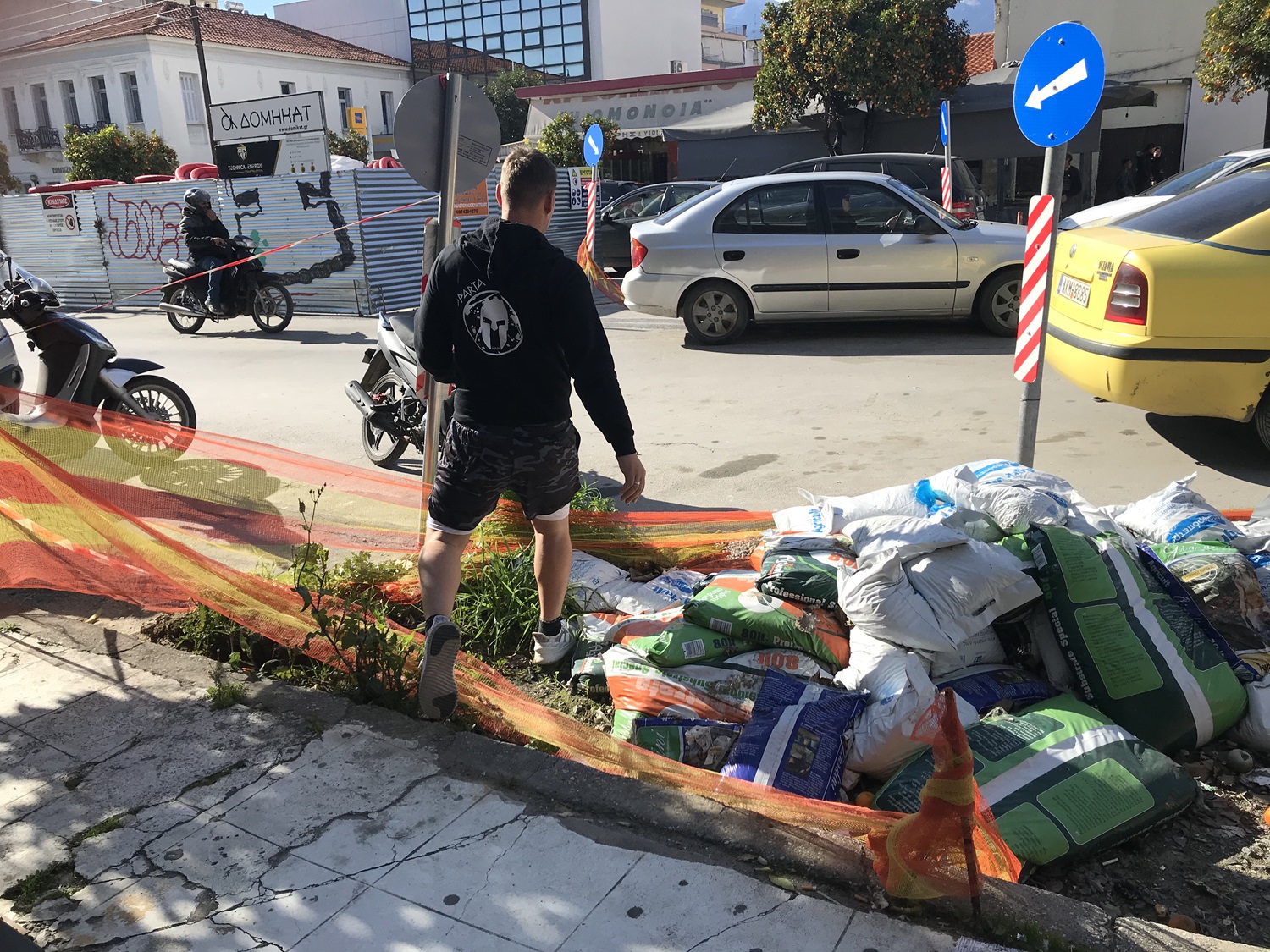 Η σήμανση περί εγκατάστασης εργοταξίου είναι δεδομένη, ωστόσο η ιδιαιτερότητα του συγκεκριμένου έργου σε ένα κεντρικότατο σημείο, από το οποίο διέρχονται καθημερινά εκατοντάδες πολίτες, οδηγεί αναπόφευκτα σε διάτρηση του ισχύοντος πλαισίου. Έτσι, καθώς η απομόνωση του πεδίου εργασιών είναι φαινομενικά αδύνατη, άνθρωποι όλων των ηλικιών βρίσκουν διόδους διάσχισης ενός υπό κατασκευή δρόμου, που κατά την κοινή λογική θα έπρεπε να είναι πλήρως αποκλεισμένος. Το ενδεχόμενο για ρητή απαγόρευση κίνησης εντός του εργοταξίου, όχι μόνο δεν μπορεί να εφαρμοστεί και ελεγχθεί όπως έχει διαμορφωθεί η κατάσταση, αλλά θα προκαλέσει και μεγαλύτερη αναστάτωση και εμπόδια στην πρόσβαση σε επιχειρήσεις και οικίες. Εάν δεν βρεθεί κάποια κοινής αποδοχής λύση, για όσο διαρκέσει το έργο, μάλλον επαφίεται στην προσωπική ευθύνη του καθενός η προστασία του…