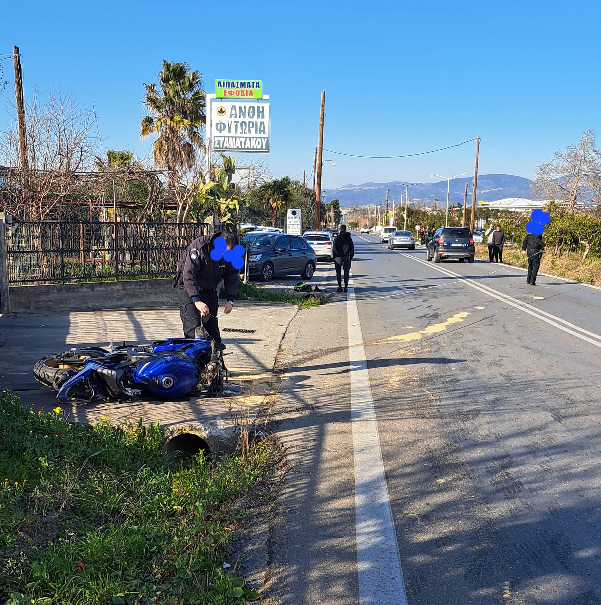 Επί τόπου, εκτός από το ΕΚΑΒ, έσπευσαν και δυνάμεις της Τροχαίας για την καταγραφή τού περιστατικού και τη ρύθμιση της κυκλοφορίας.